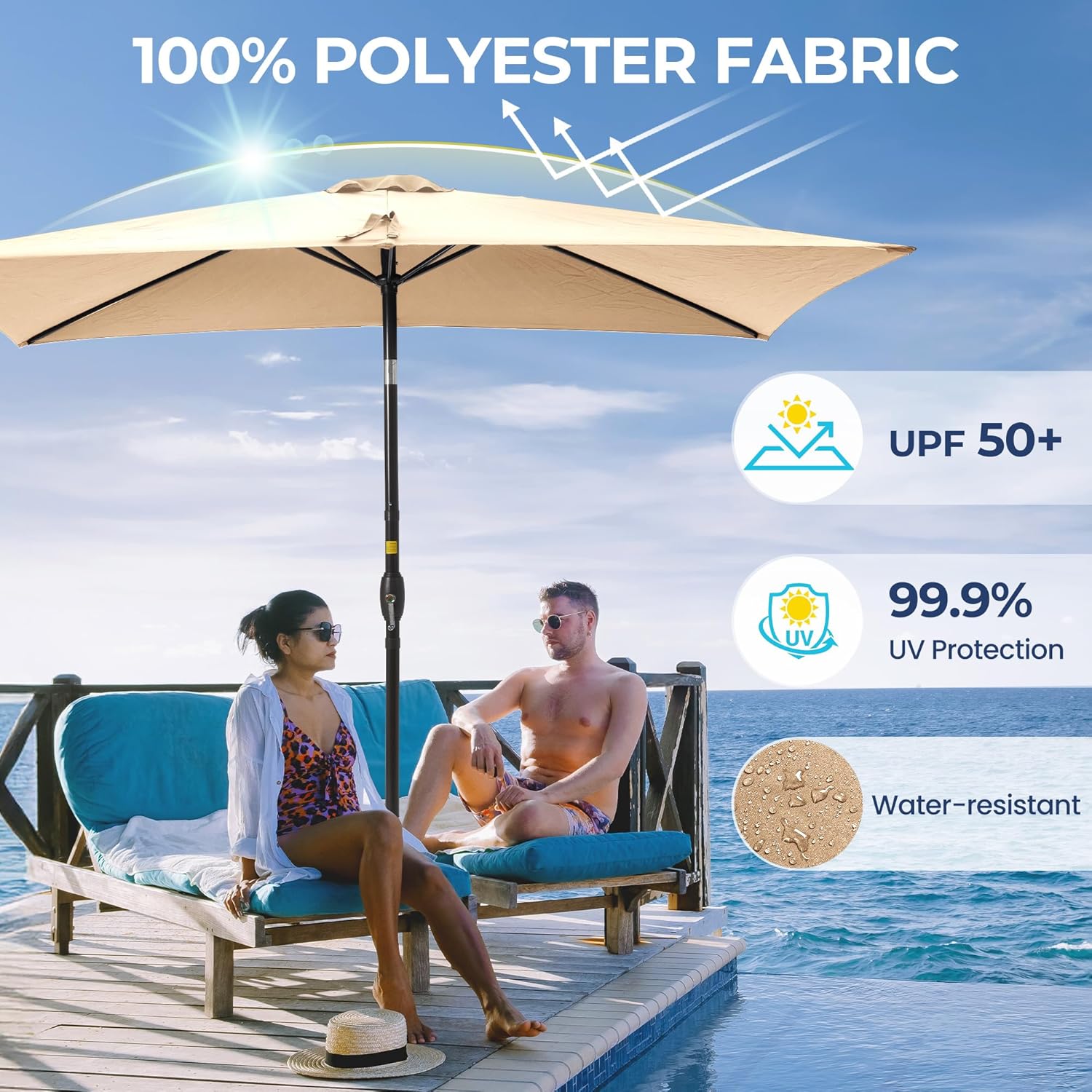 SUNVIVI OUTDOOR Patio Umbrella, 6.5' x 10' Rectangular Patio Umbrella, Metal Pole Square Outdoor Umbrella with Crank and Push Button Tilt, 6 Steel Ribs, Polyester Canopy