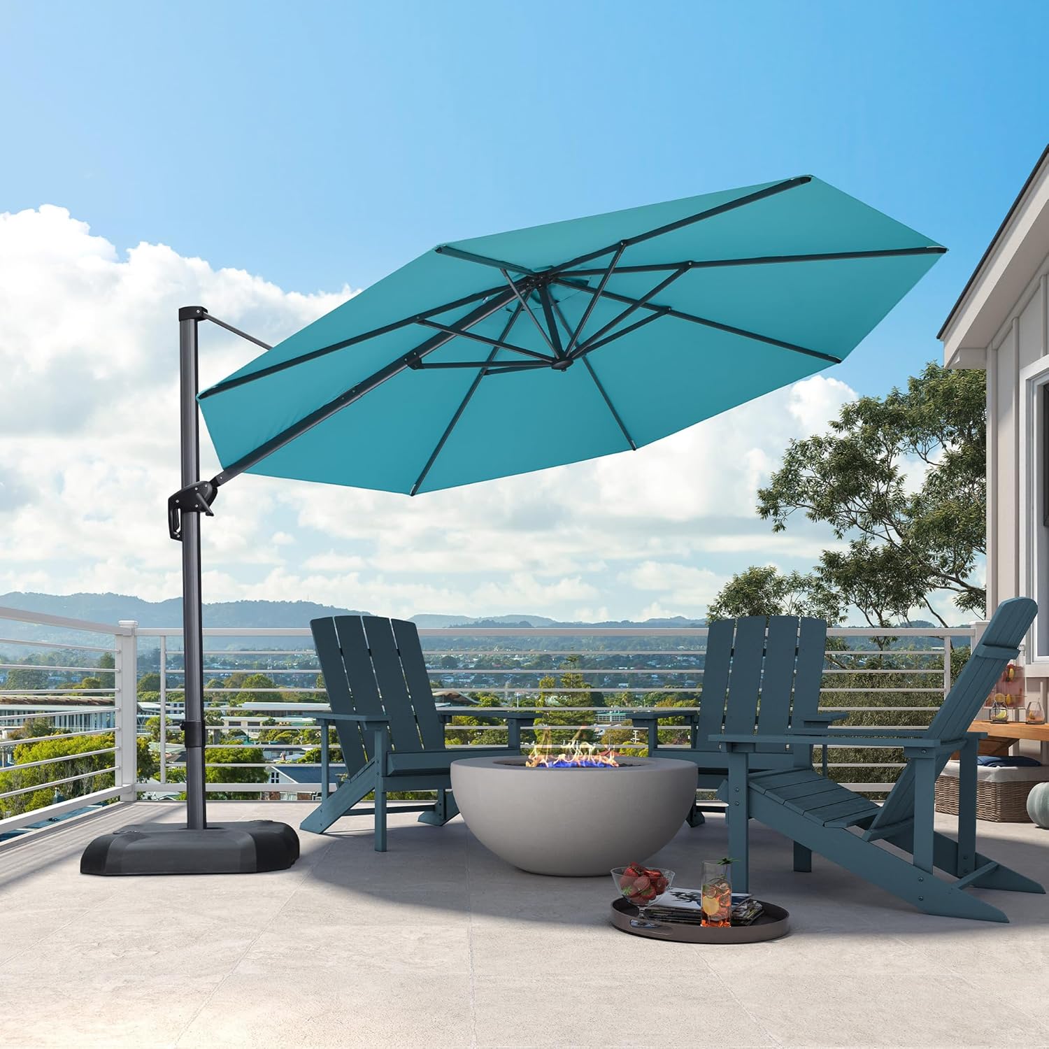 PURPLE LEAF 11 Feet Patio Umbrella Outdoor Cantilever Round Umbrella Aluminum Offset Umbrella with 360-degree Rotation for Garden Deck Pool Patio, Turquoise Blue