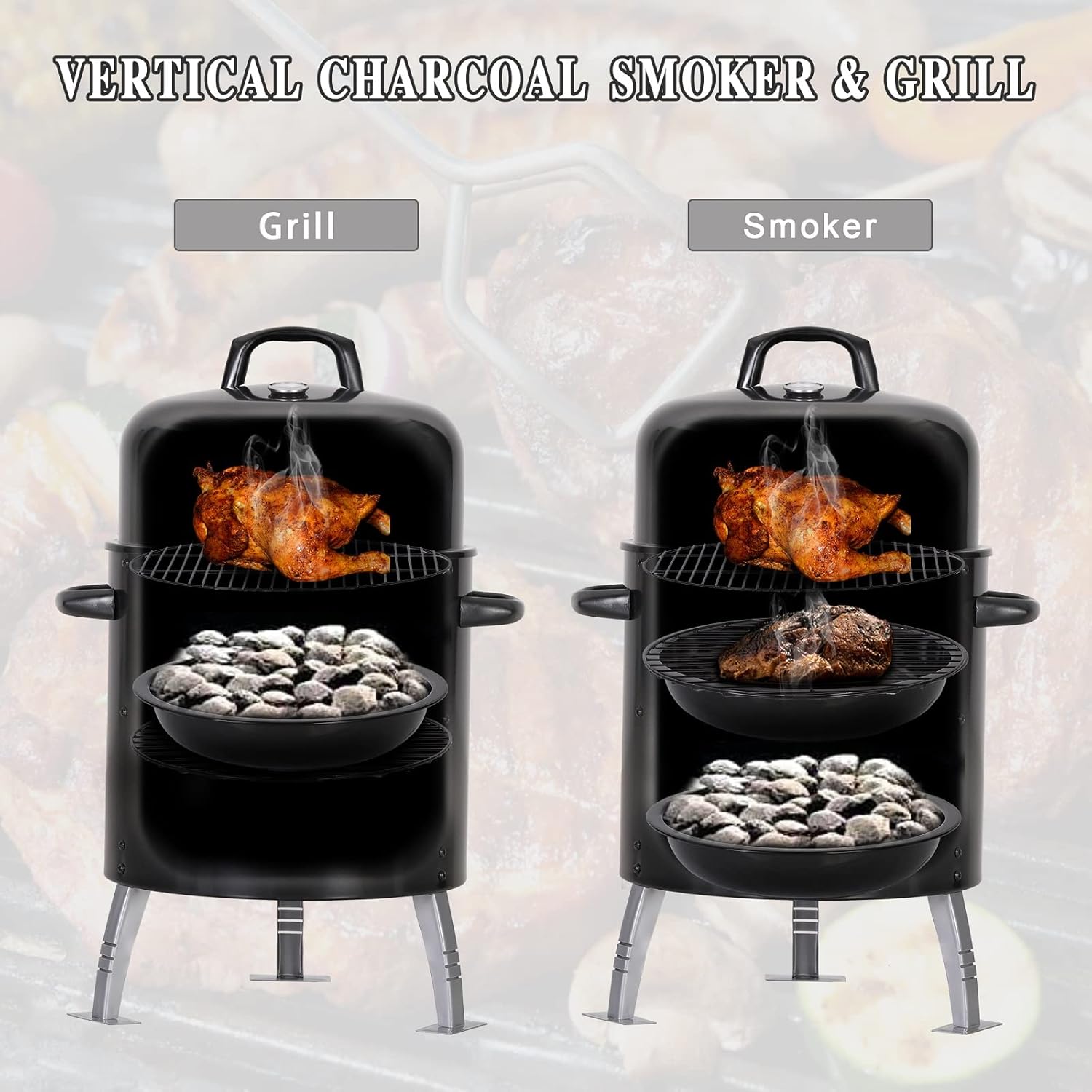 - 2 in 1 Smoker & BBQ Grill: The 2 in 1 vertical smoker and BBQ grill offers all you need for the ultimate cooking experience. Combining a charcoal smoker and grill, this smoker provides various ways to cook for all your friends and family