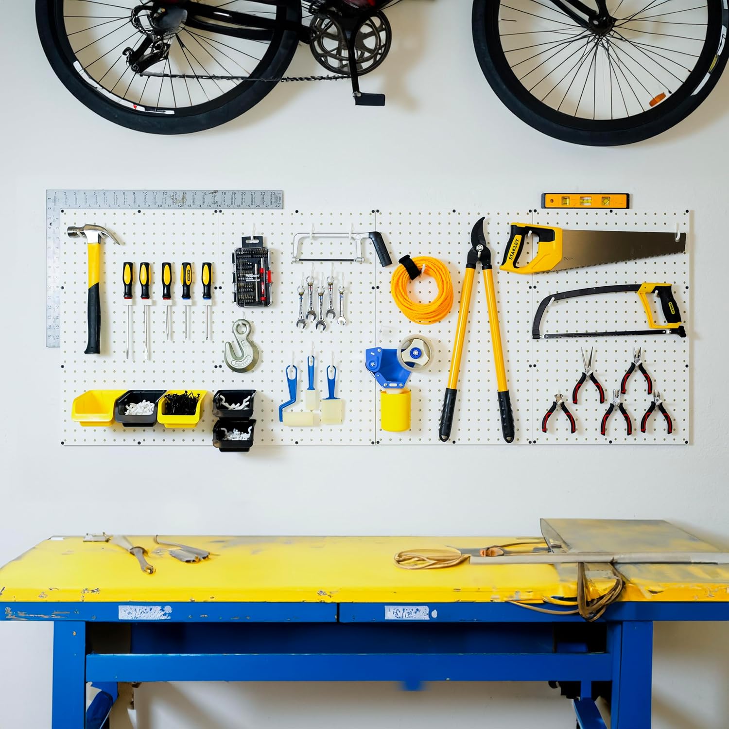 - π οΈ Complete Organizer Kit β Made in USA β Includes FOUR WHITE pegboard panels (24"x16" each) plus all mounting hardware for fast, easy installation.