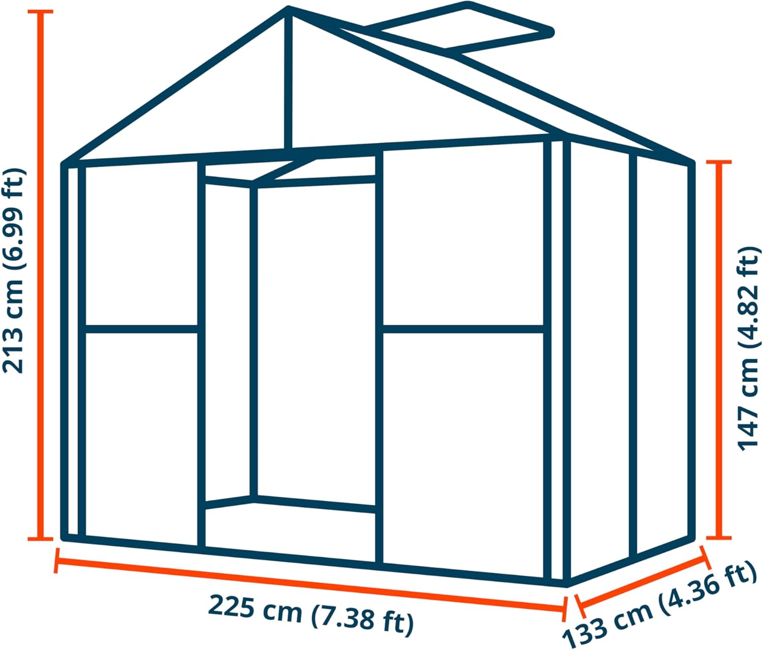 - SPACIOUS DESIGN: 7 ft peak height (4.8 ft side height) provides ample room for plants to thrive. The double sliding door (42.5 x 67.7 in) glides smoothly on rollers for effortless operation.