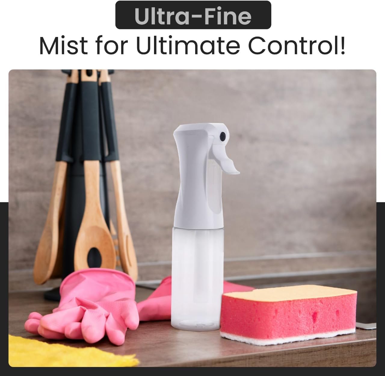 VIGOR PATH Continuous Spray Bottle - Ultra Fine Mist Water Sprayer for Hair, Home Cleaning, Plants, Salons - 200ml / 6.7oz Empty Spray Bottle (Clear)