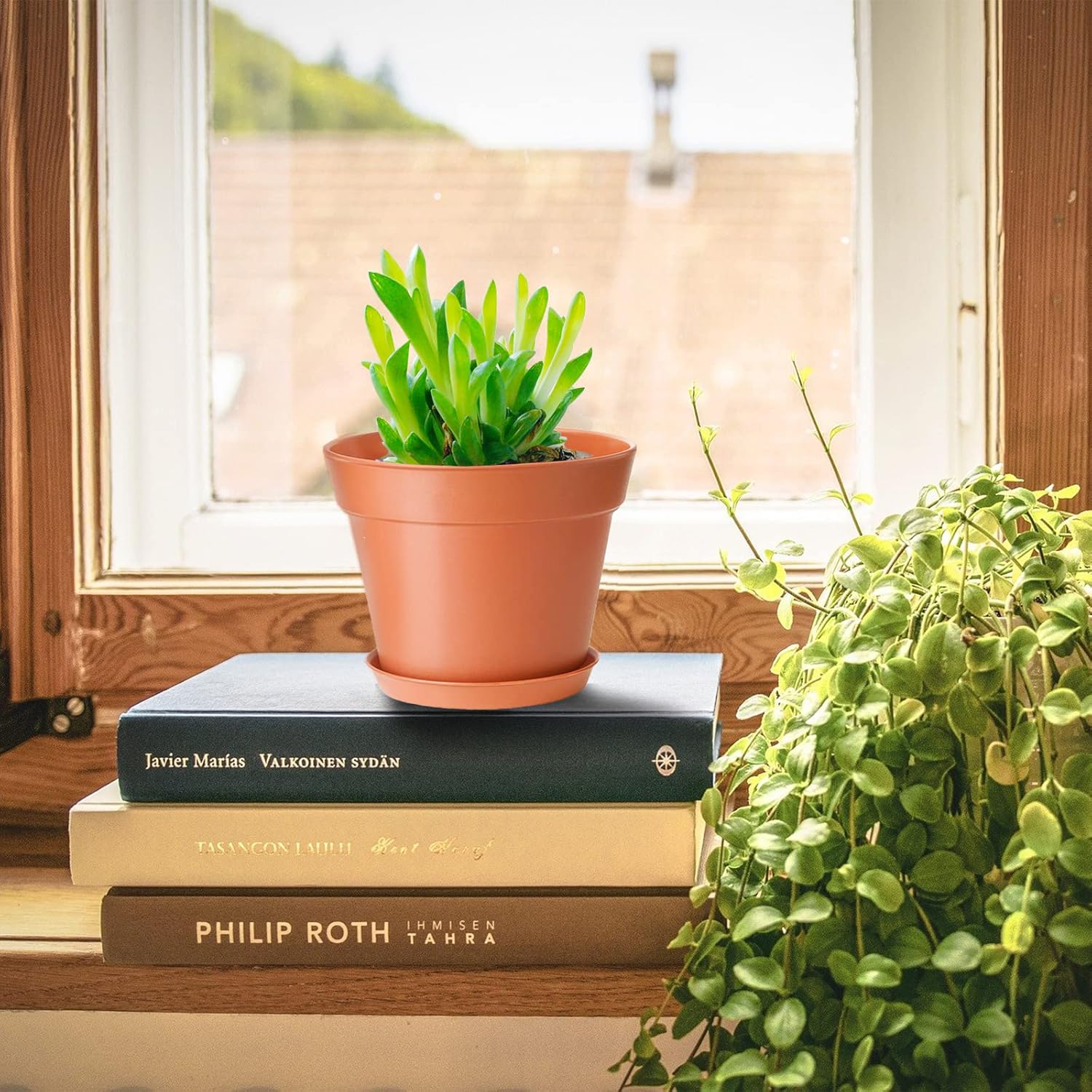 4 inch Small Plant Pots, 28 Pack Plastic Planters with Drainage Holes and Saucers for Flowers Plants, Succulents, Seed Starting Pots, Terracotta