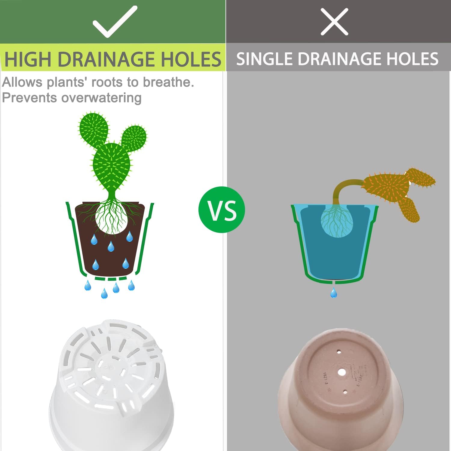 - [Small Planters with Drainage Holes] We improved the drainage holes, thickened the bottom, plants can breathe freely, prevent excessive watering, maintain soil drainage and ventilation, and ensure that plants do not rot roots. With trays to catch the extra water and keep the table clean.