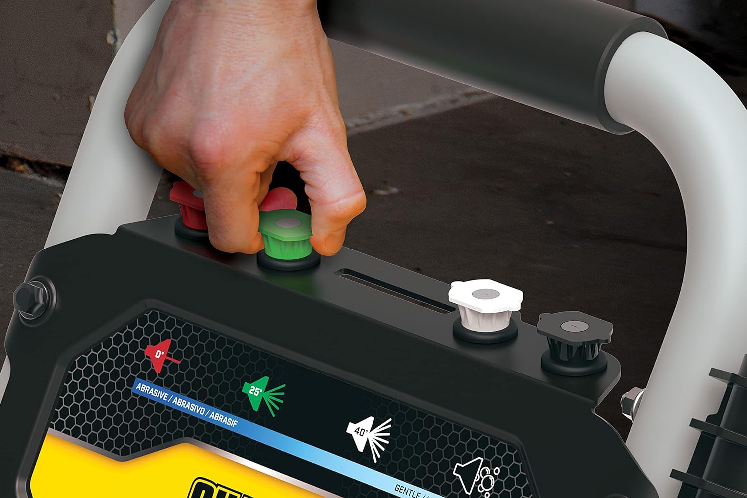 - VERSATILE Quick-connect gun, wand and four nozzles (0ห, 25ห, 40ห, soap), and a 25-foot high-pressure hose