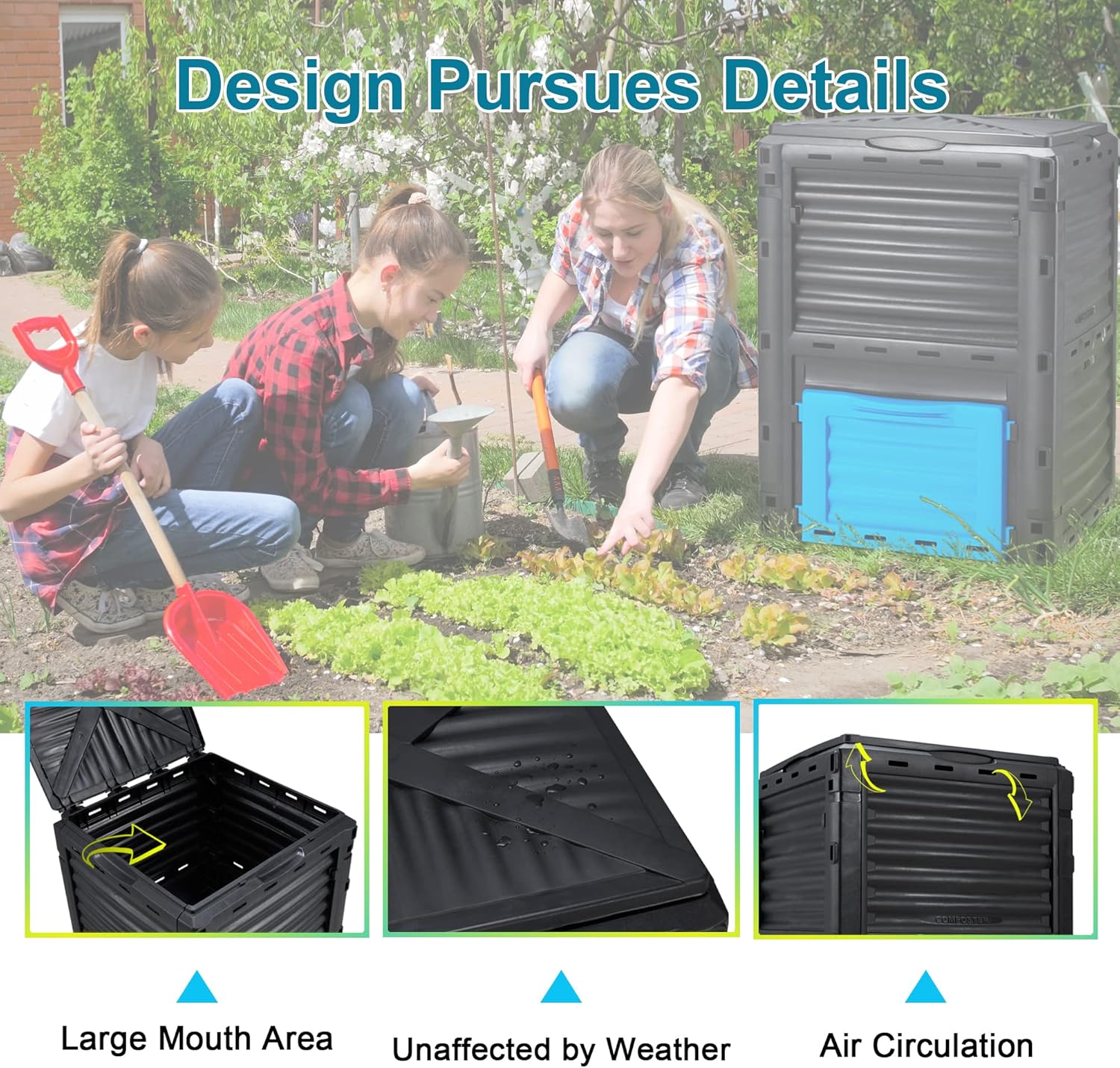 Garden Compost Bin 80 Gallon (300L) Large, Outdoor Composter from PP Material,Composting Box Easy Assembly & Many Vents, Fast Creation of Fertile Soil, Lightweight & Sturdy