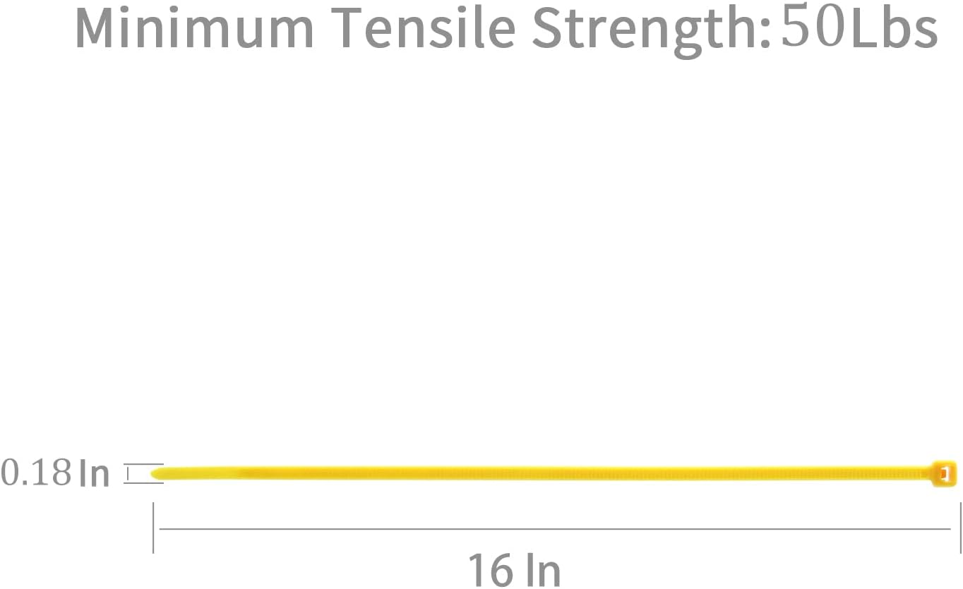 XINGO 100PCS Cable Zip Ties Heavy Duty, Premium Nylon Plastic Wire Ties with 50 Pounds Tensile Strength, Self-Locking Black Nylon Zip Ties for Indoor and Outdoor (16 inch, Yellow)