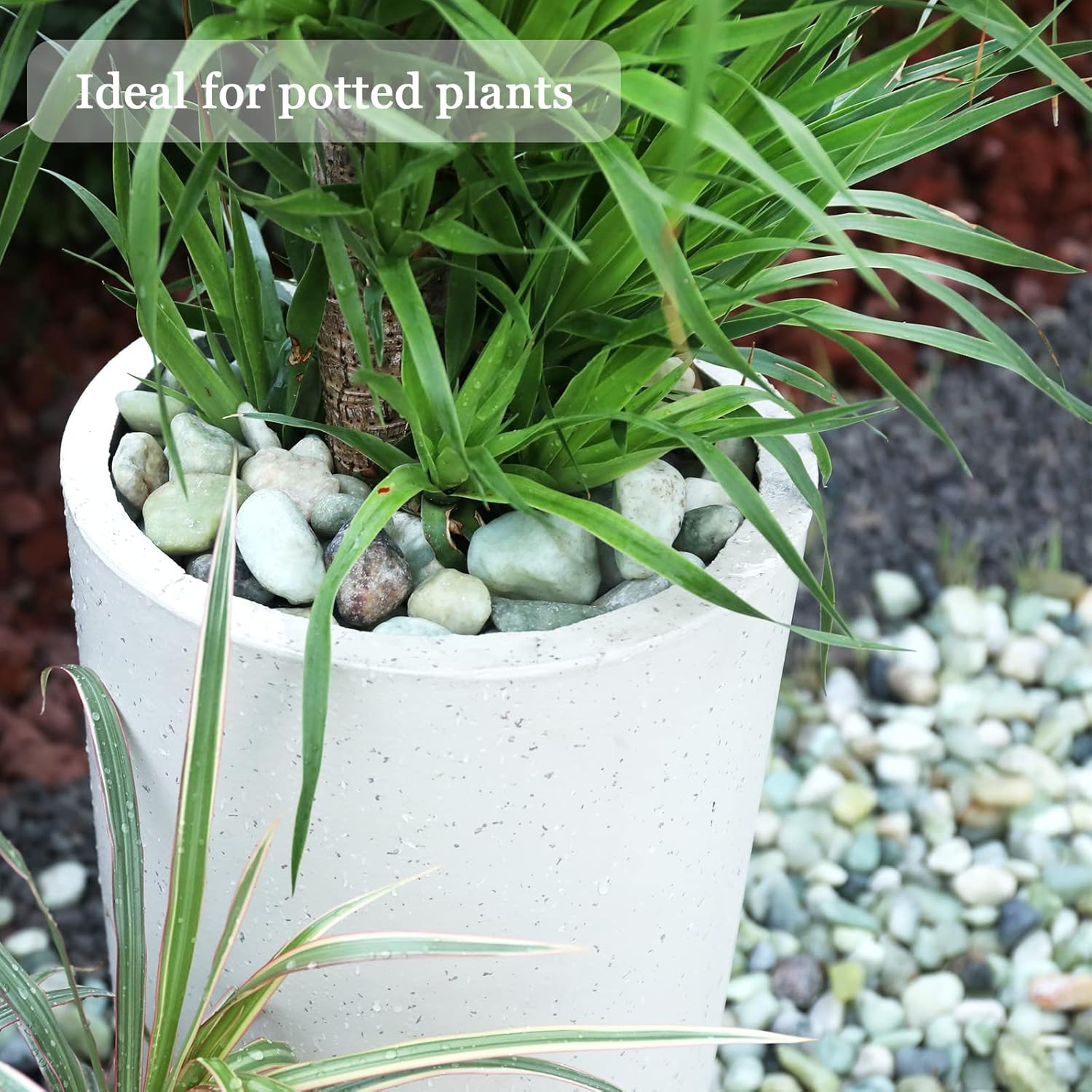 - 【Round and Smooth】 These pebbles are easy on the feet as there are no sharp edges. Because of the shape, river rocks provide good drainage and is very attractive at the same time. Pebbles are polished and coated in pure paraffin wax to enhance color and shine.