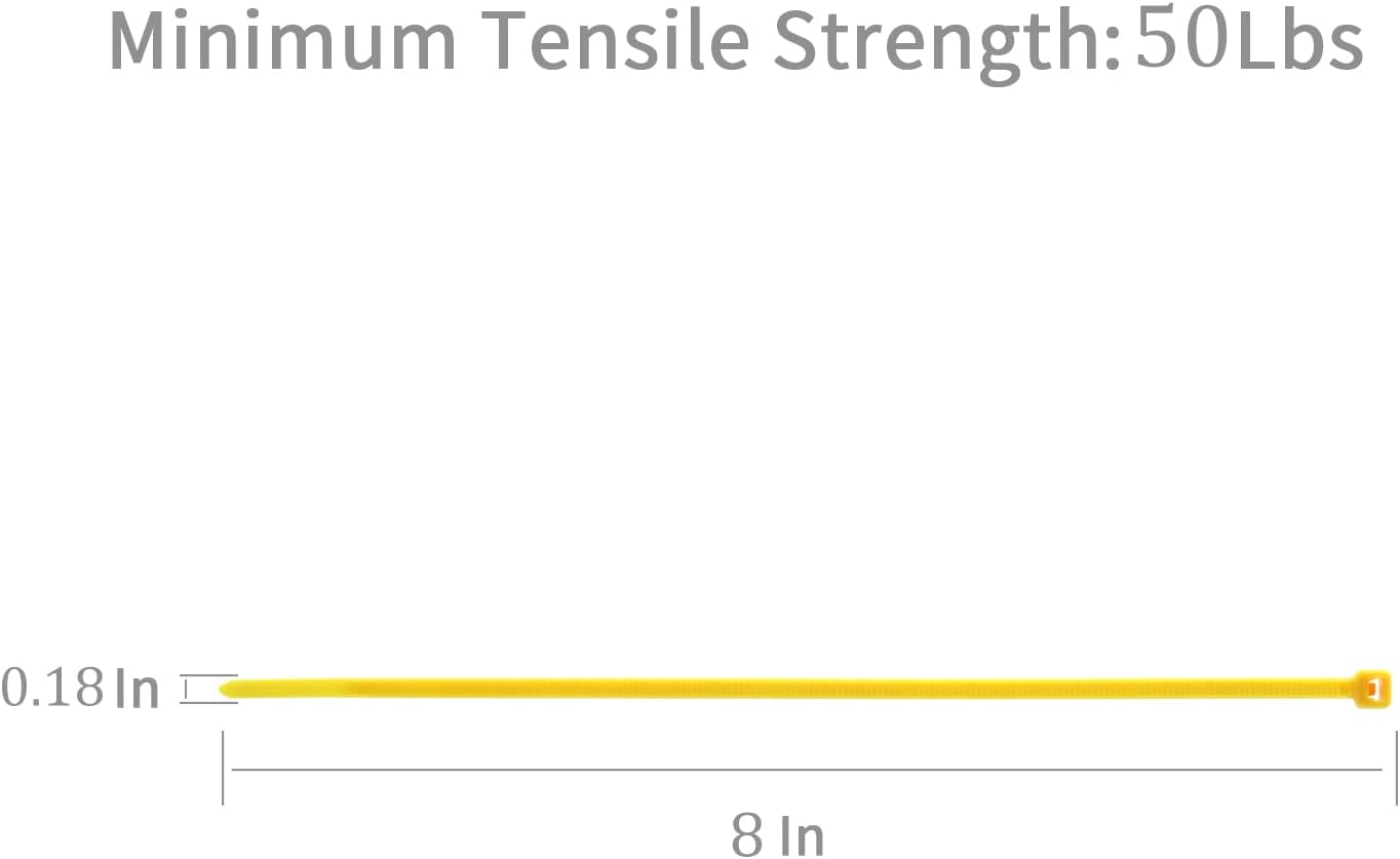 XINGO 1000 PCS Yellow Zip Ties 8 Inch, 60 LBS Tensile Strength, Self-Locking Nylon Plastic Nylon PA66 Wire Ties for Indoor and Outdoor Use