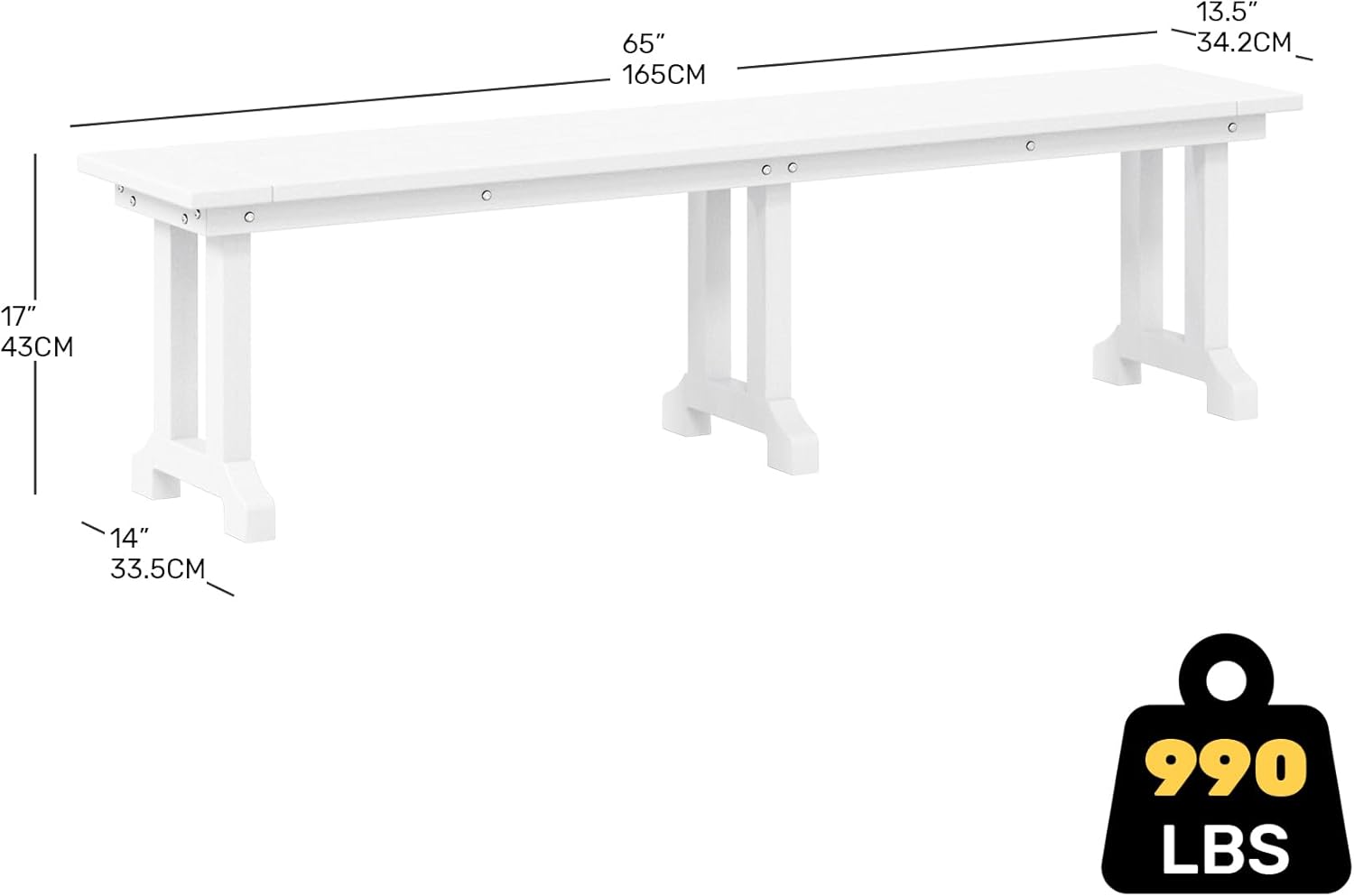 Outdoor Benches Weatherproof, Park Long Bench Poly Lumber Backless for Entryway Front Porch Garden Bench Seat for Patio, White