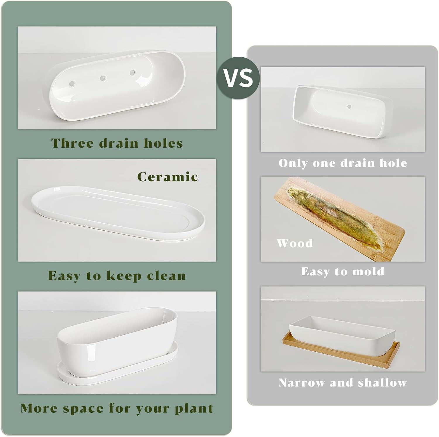 - INDOOR OUTDOOR CERAMIC POTS: The set has two sizes of pots: 11"x4.3'' x3.7ββ and 14.6"x5.7"x4.5". Great for decorating windowsills, tabletop, shelves, bedrooms, kitchens, gardens, and outdoor patios. Smooth inner finish for easy cleaning