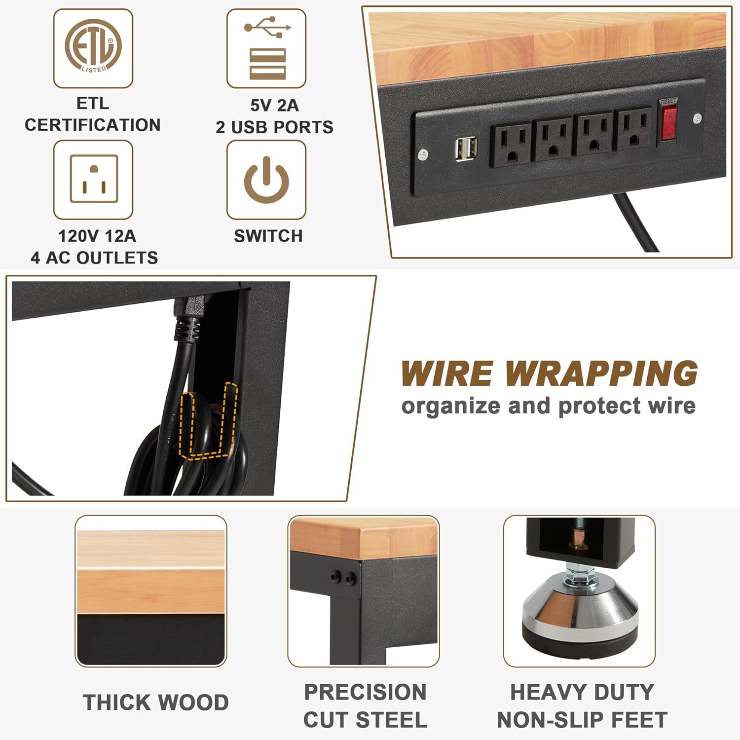 HABUTWAY Height Adjustable Workbench 48"x 24" 2000 Lbs Capacity Solid Wood Work Station Heavy-Duty Work Tables with Power Outlets for Garage Party Shop Office