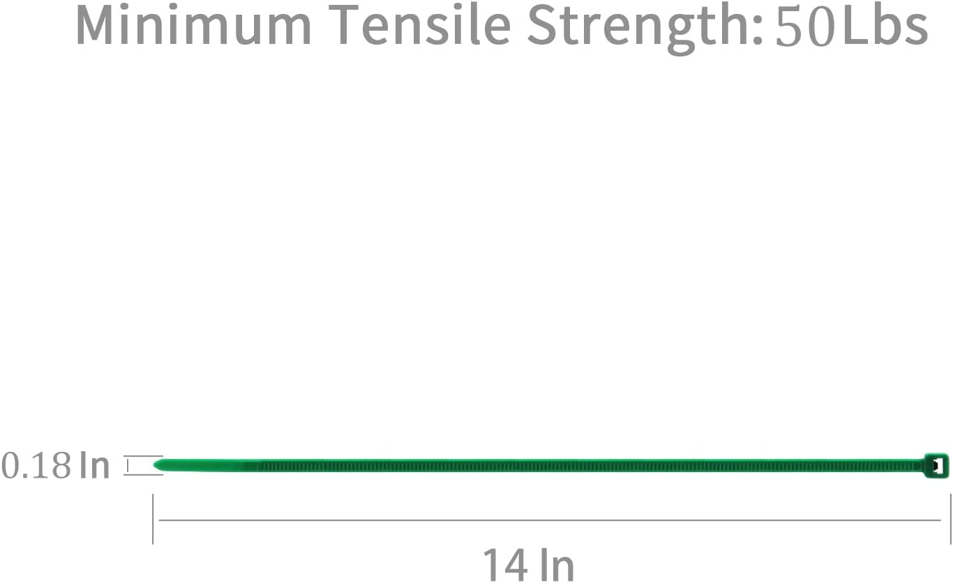XINGO 100PCS Cable Zip Ties Heavy Duty, Premium Nylon Plastic Wire Ties with 50 Pounds Tensile Strength, Self-Locking Black Nylon Zip Ties for Indoor and Outdoor (14 inch, Dark Green)