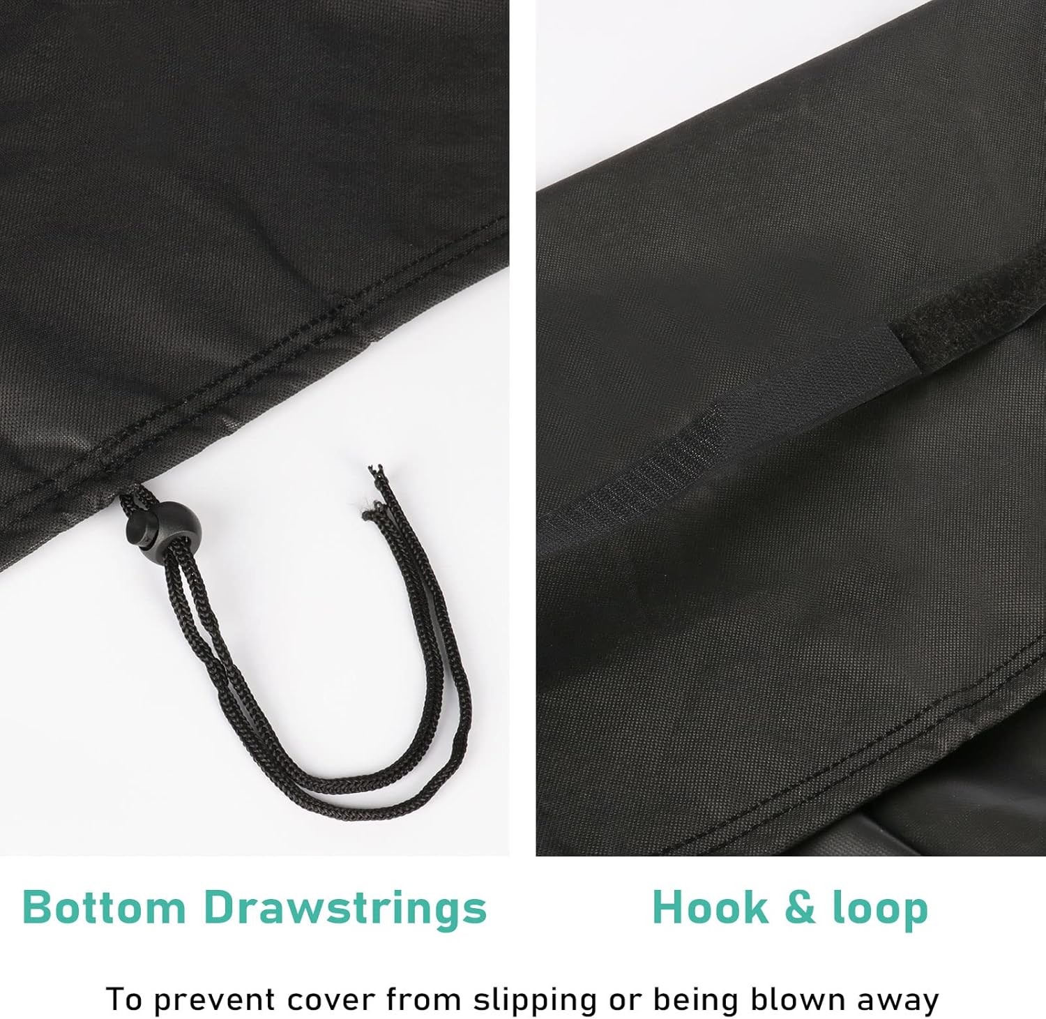 - ADJUSTABLE DESIGN: The drawing string at the bottom and the hook& loop on the side can flexibly adjust the tightness of the cover so that it can sit and stay firmly over your tabletop propane grill, preventing it from being blown away by the wind.