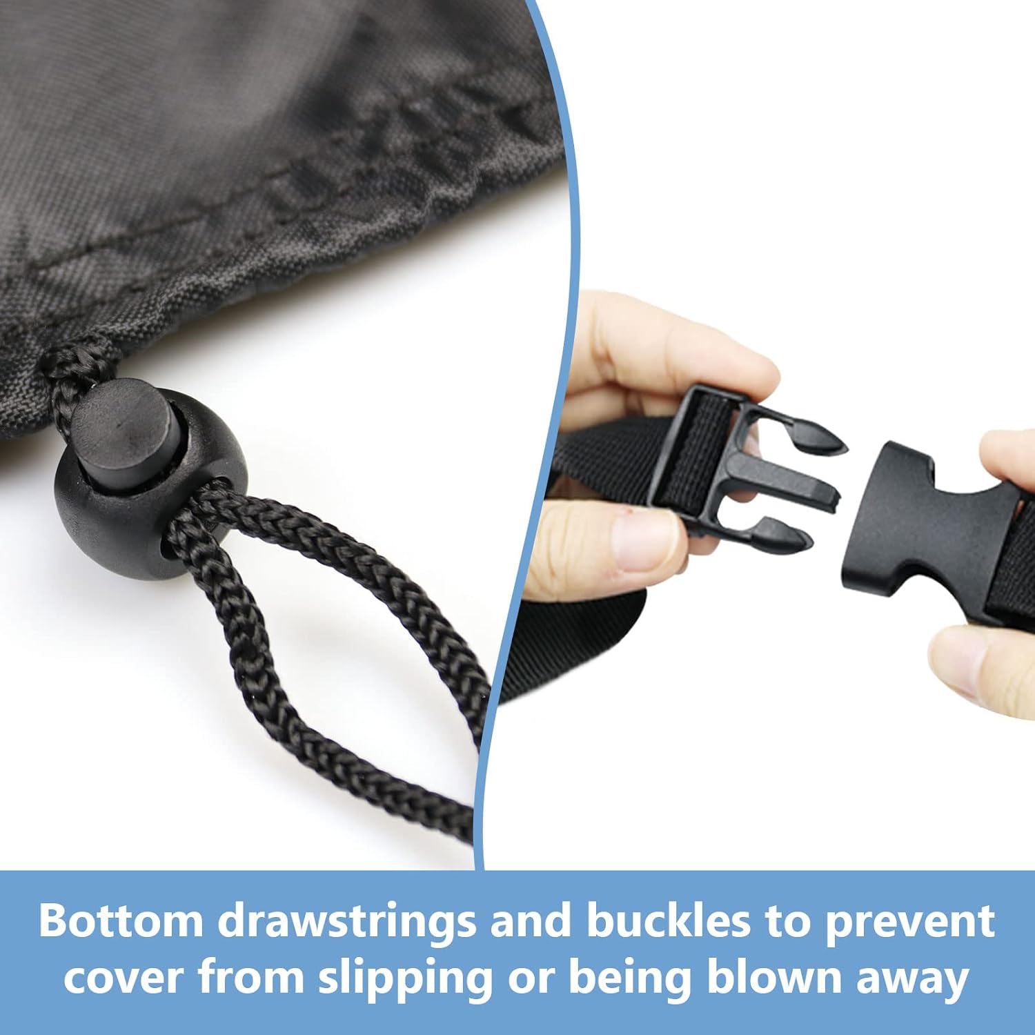 - ADJUSTABLE STRAP: The adjustble straps with buckles and drawing string at the bottom can flexibly adjust the tightness of the cover so that it can sit and stay firmly over your outdoor griddle, preventing it from being blown away by the wind.