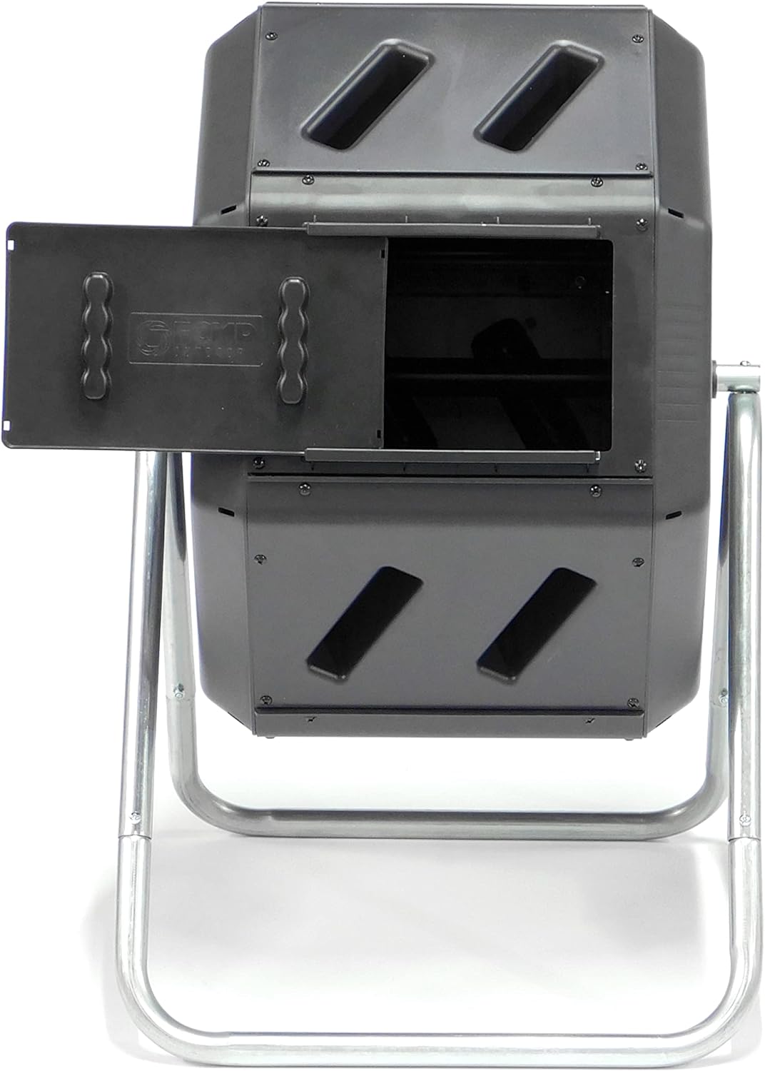 - EASY TO USE β Fantastic for beginners! The large opening and removable door make it easy to add scraps/clippings and remove finished compost. Deep fins on the body provide great ergonomic handholds.