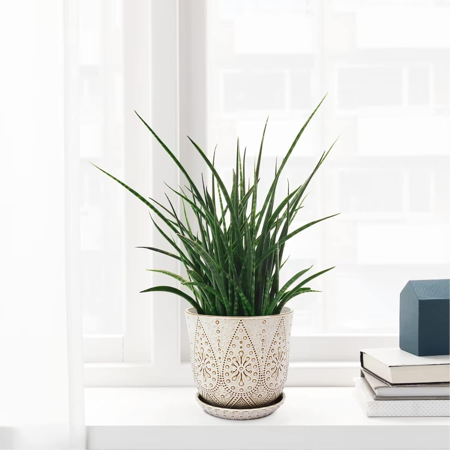 Gepege 8 Inch Plant Pot, Creamy White Ceramic Planter with Drainage Holes and Saucers for Plants Indoor and Outdoor Flower Pot