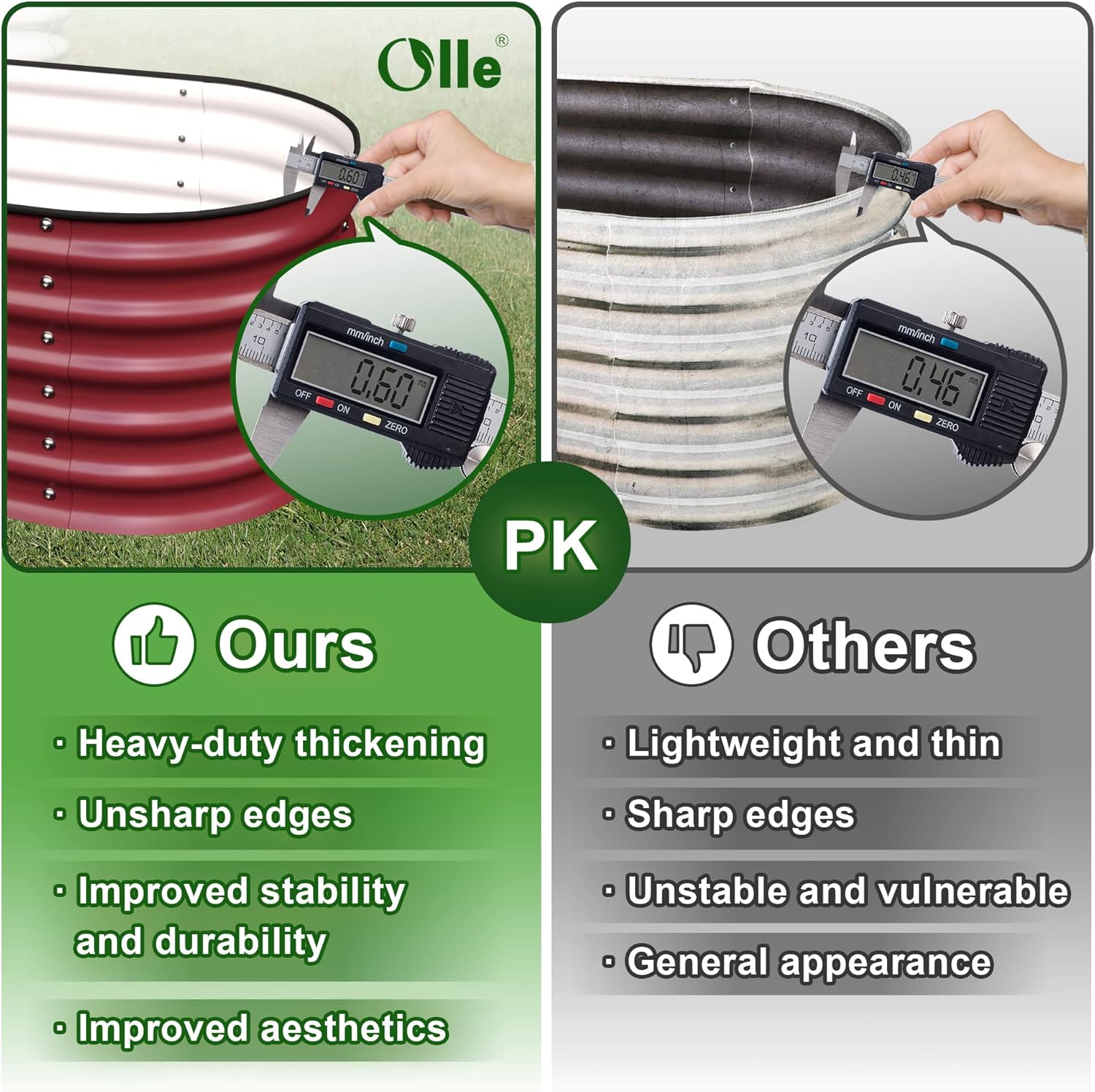 - Quality Material & Long lasting - Durably made of corrugated steel with Zinc-Aluminum coating, Olle garden bed is 5 times more durable than plastic planter box or wood raised garden bed. Extra thick 0.8mm corner steel panel, 0.6mm side panel make this oval raised garden bed solid & sturdy last for more than 20 years