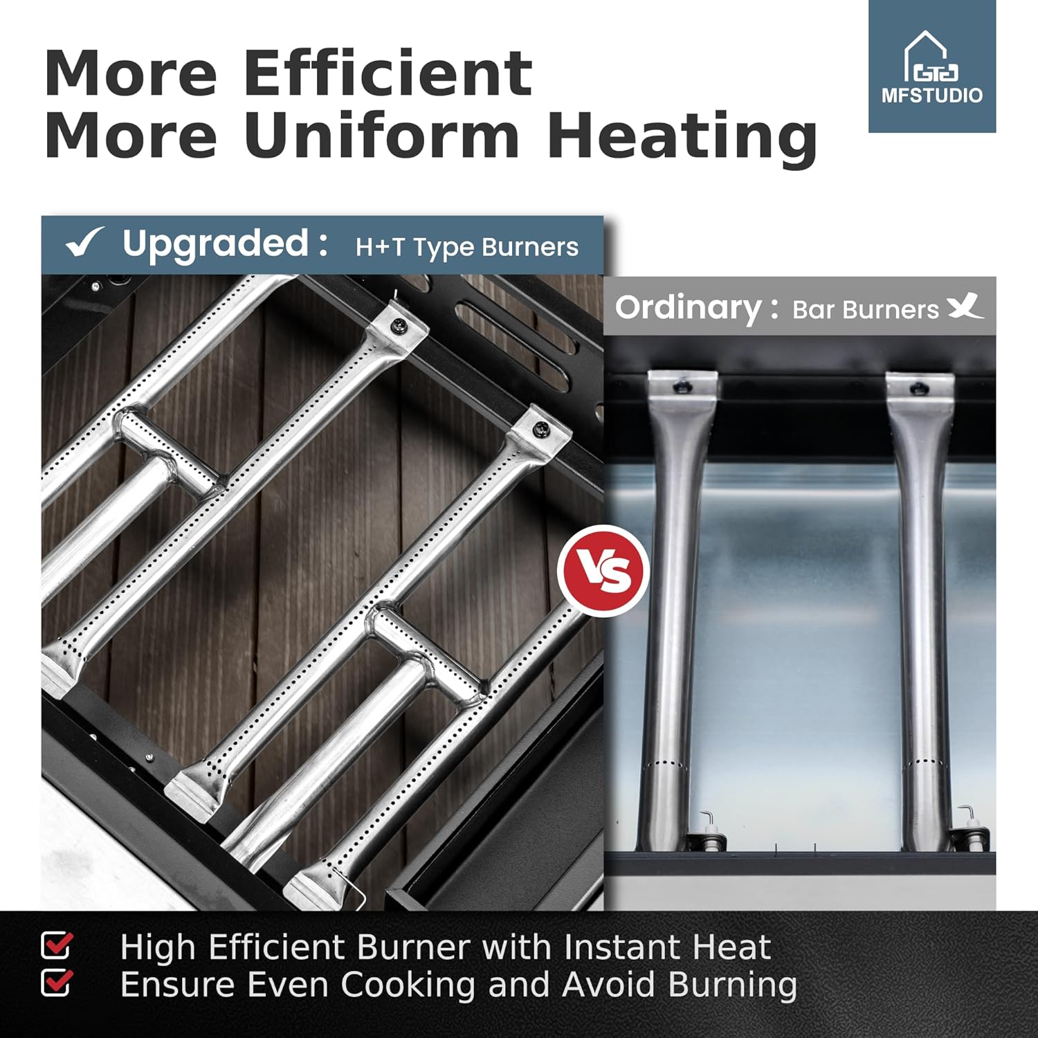 - Beginner-friendly Griddle: Upgraded T+H type burner structure, providing more even fire distribution across the surface, reducing the risk of burning, and requiring no special skills to use.