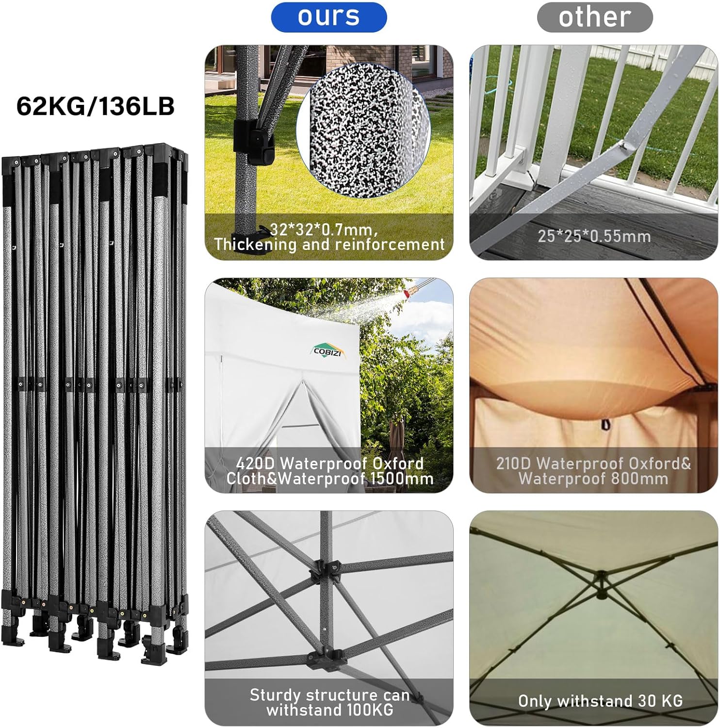 COBIZI 10x30 Pop up Canopy Tent 10x30 Canopy with Sidewalls, Heavy Duty Party Tent Tents for Parties, Foldable UPF 50+ Waterproof Commercial Easy up Canopy with Roller Bag, White(Windproof Upgraded)