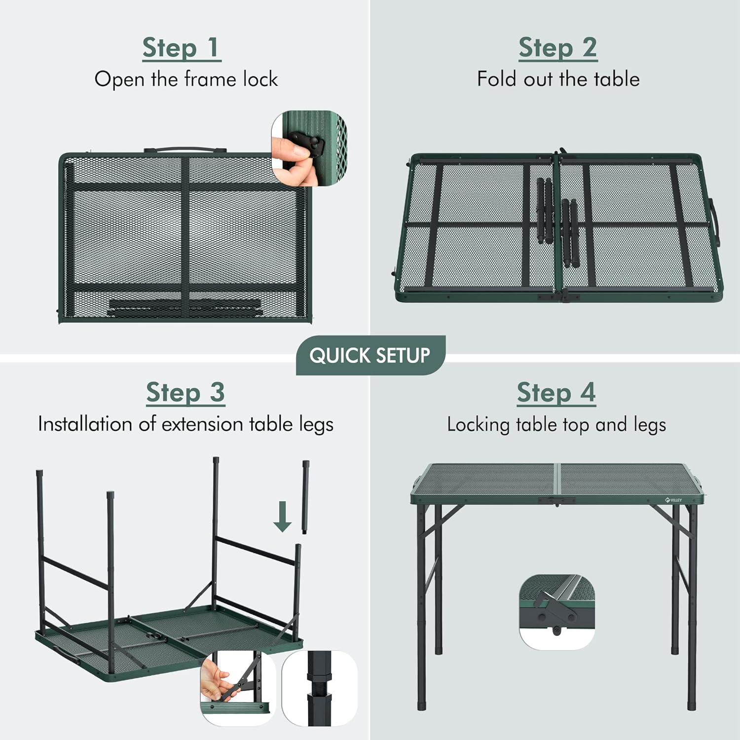 VILLEY Grill Table, 3ft Folding Camping Table with Aluminum Adjustable Legs, Portable Lightweight Camp Table for Beach Picnics and Outdoor Cooking
