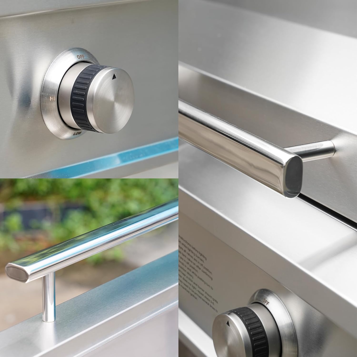 - 【Precise Temperature Control】You can easily adjust the heat for different cooking zones with independently controlled burners, making it easier to cook your favorite dishes on the drop-in griddle designed for your outdoor island;