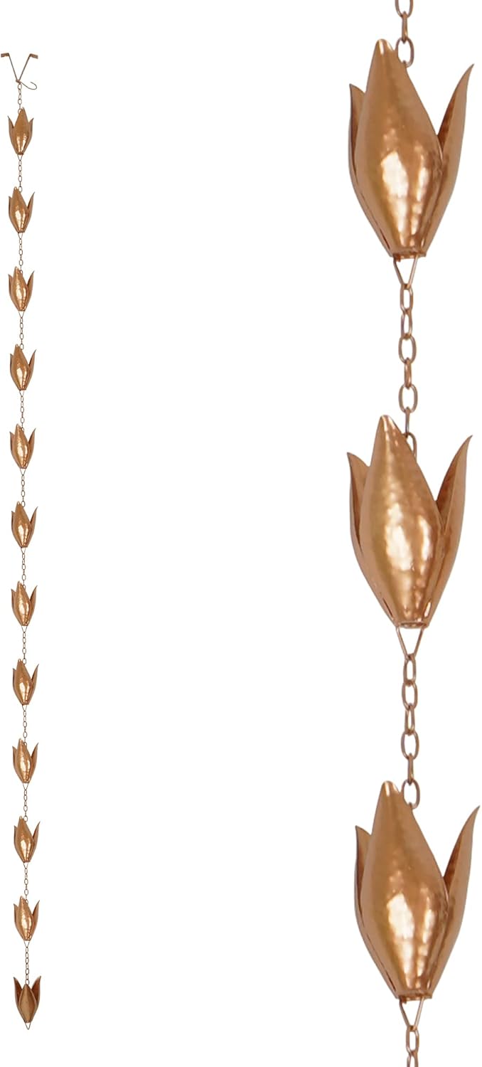 - Easy Set-Up,Set-up is quick and simple with no tools needed! The rain chain includes a clip "V" hook that easily attaches to your gutter, making attaching the rain chain effortless.