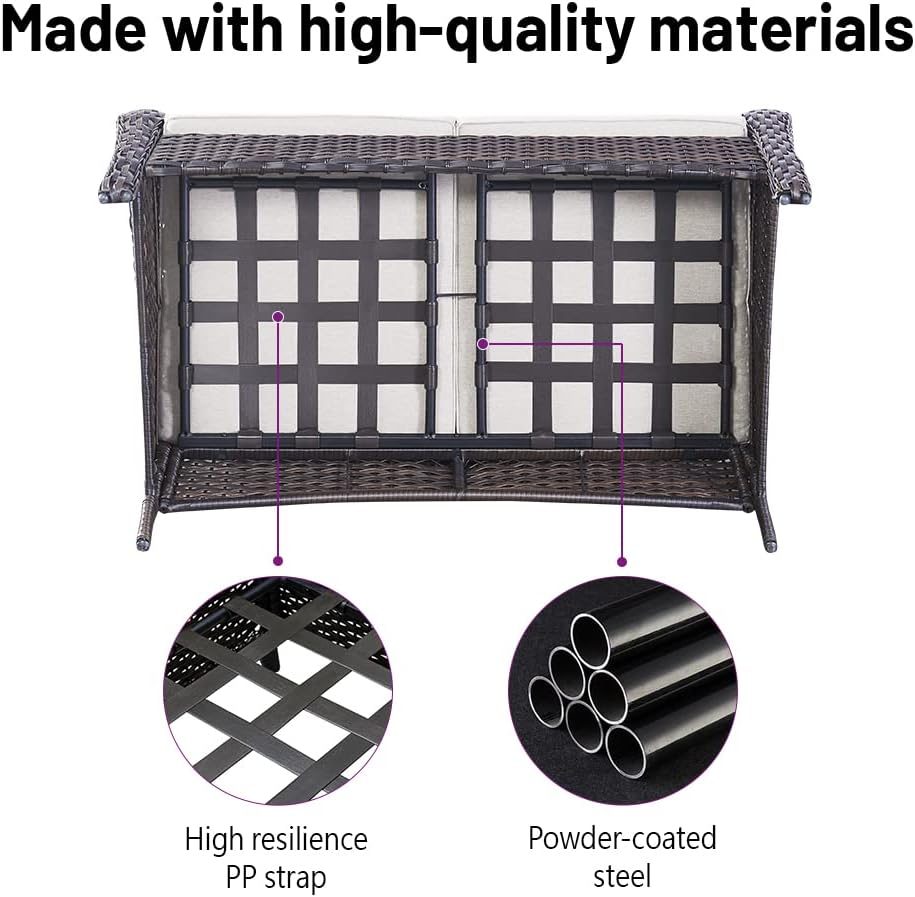- Sturdy Wicker Furniture: Outdoor patio furniture sets are made of weather-resistant PE wicker that is extremely durable and resistant to water and fading. It has various ways to suit different spaces and make this wicker set great for your garden, patio, deck, poolside, porch, hallway, balcony and backyard.