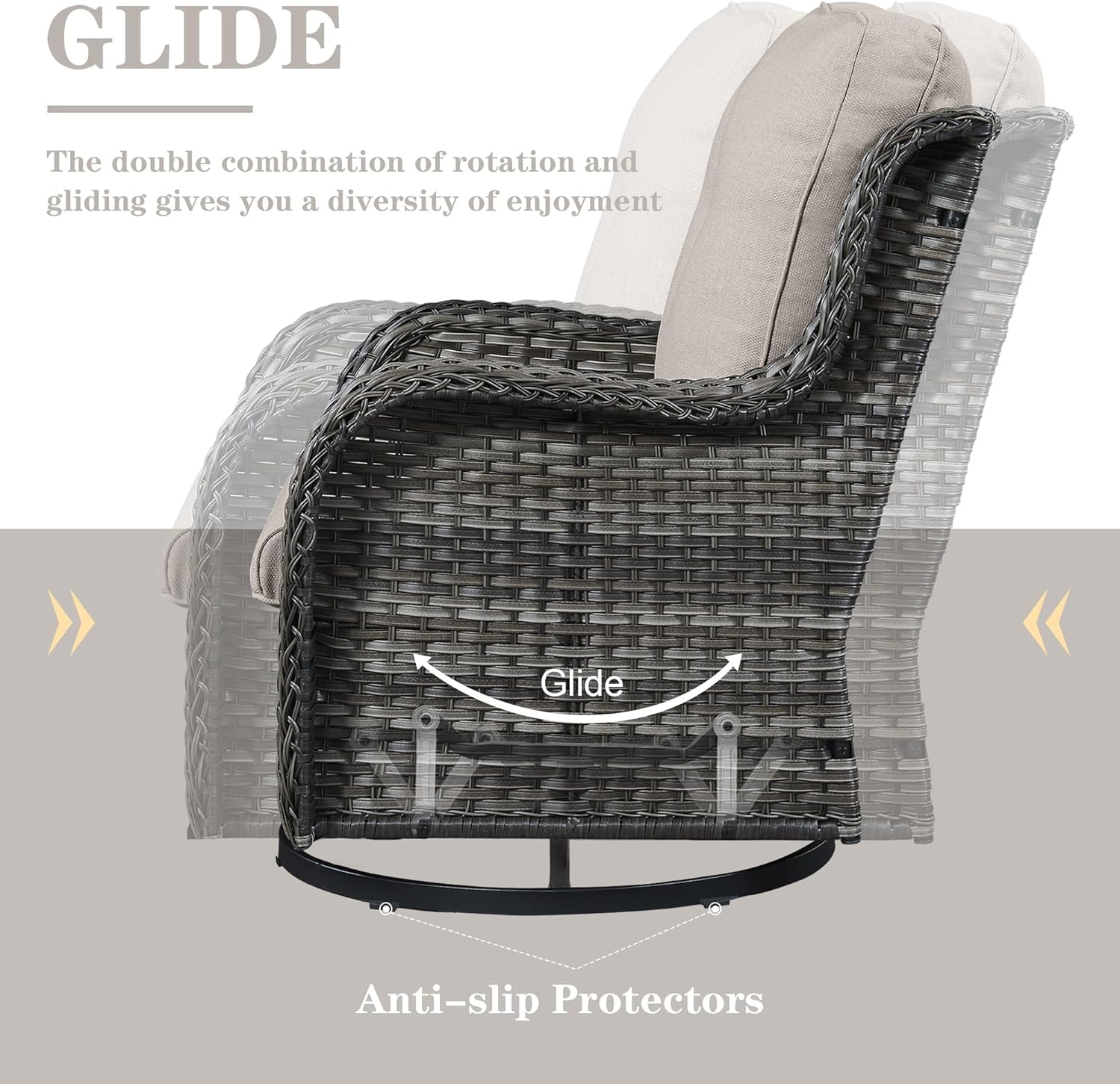- Comfortable And Easy To Clean: Each glider chair and sofa in this outdoor set comes with a 4-inch thick foam seat cushion and an 8-inch thick cotton back cushion, which is ergonomic and enhances the overall comfort of the chair. The chair cushion cover is made of outdoor professional olefin fabric which is water resistant, and the seat cushion is equipped with zippers that are removable and easy to clean.