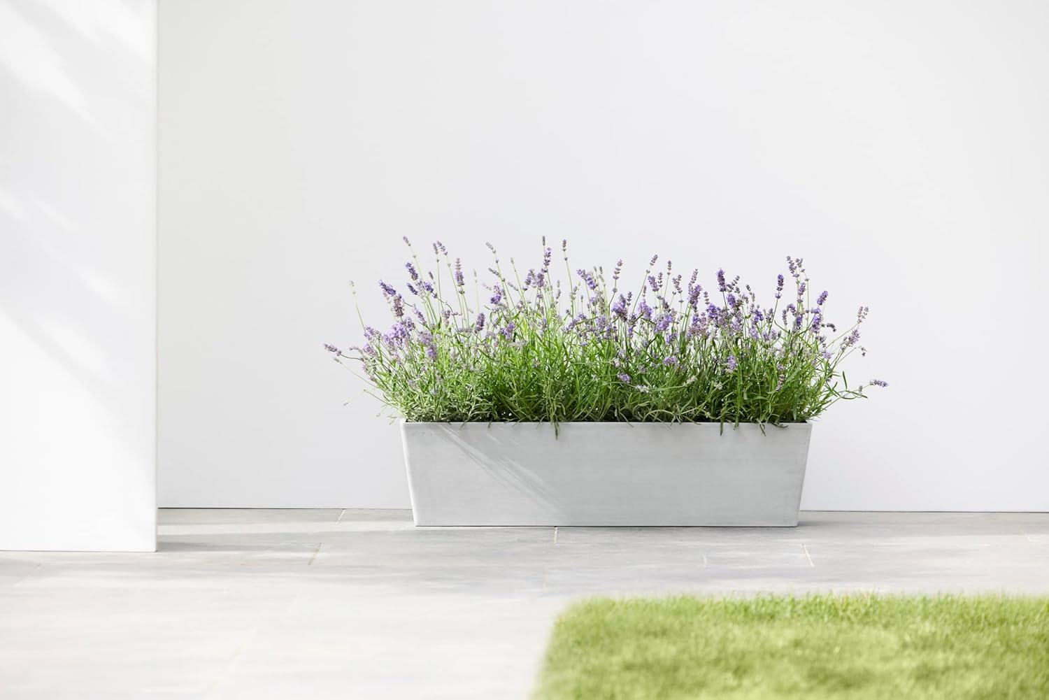 Ecopots Bruges Durable Modern Rectangular Indoor/Outdoor Recycled-Based Composite Flower Pot Planter, White Grey, 31.5"