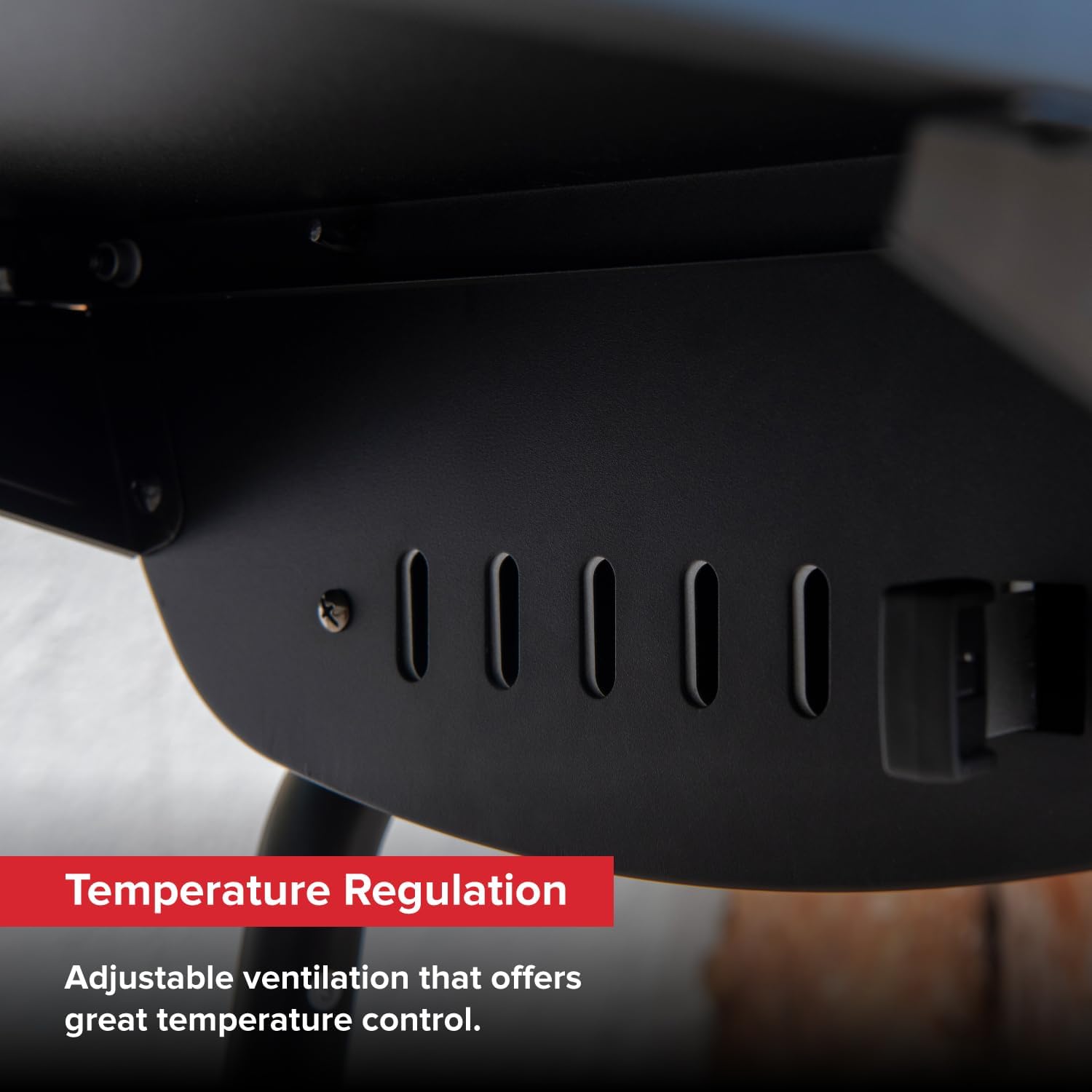 - 【PRECISE HEAT CONTROL WITH CHIMNEY VENTING】Regulate your grill’s temperature with precision using the chimney vent. Adjust airflow to the charcoal by opening or closing the vent, controlling heat and burn time for consistent cooking results