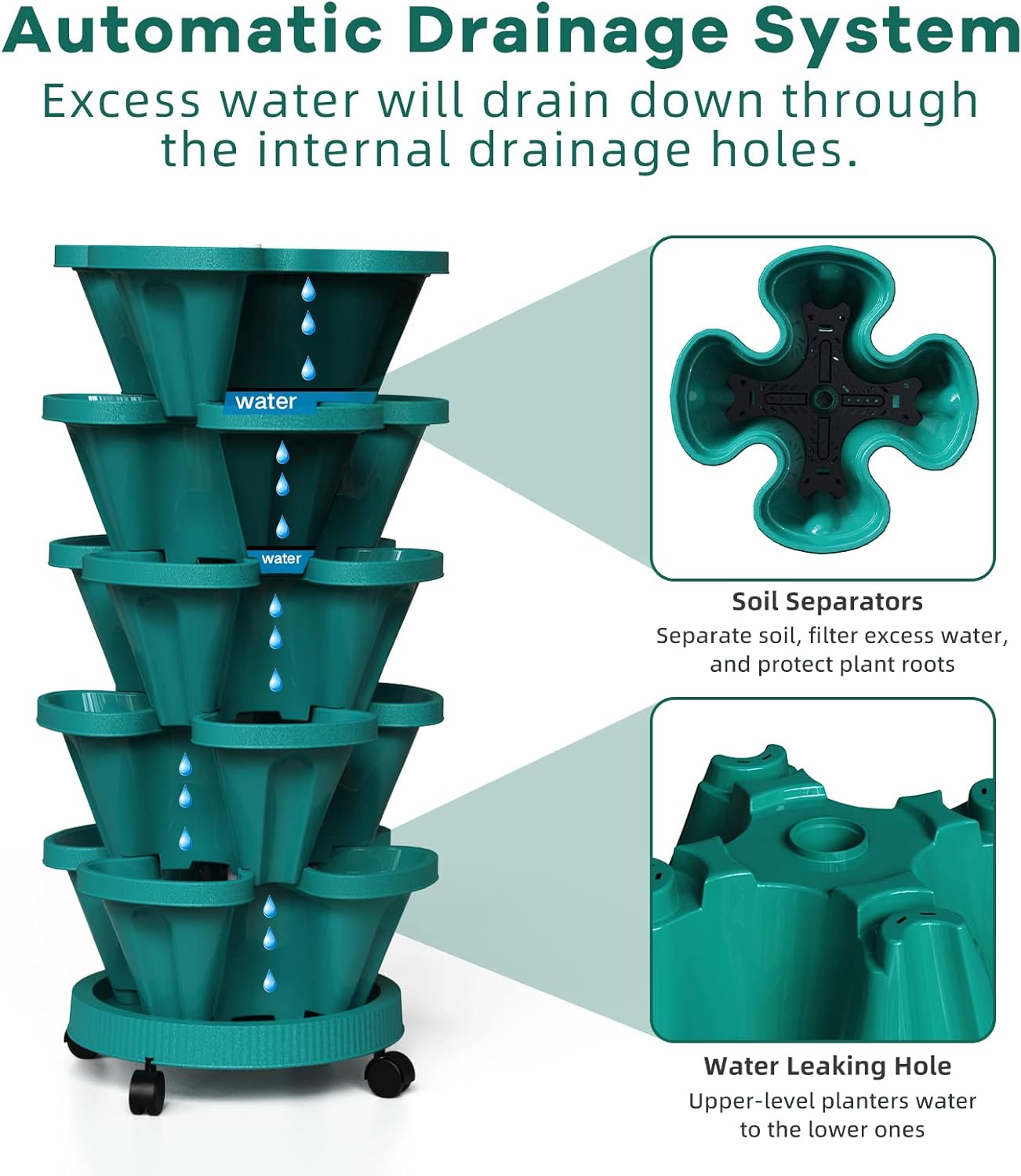 - 6 Tier Vertical Planter - 6 tier stacking planter, made of BPA-free material, can hold up to 24 different plants, such as strawberries, spinach, leaf lettuce, arugula, and mustard greens, and a few smaller herbs and flowers. Plus, it's the perfect vessel for strawberries as the berries cascade over the container lip.