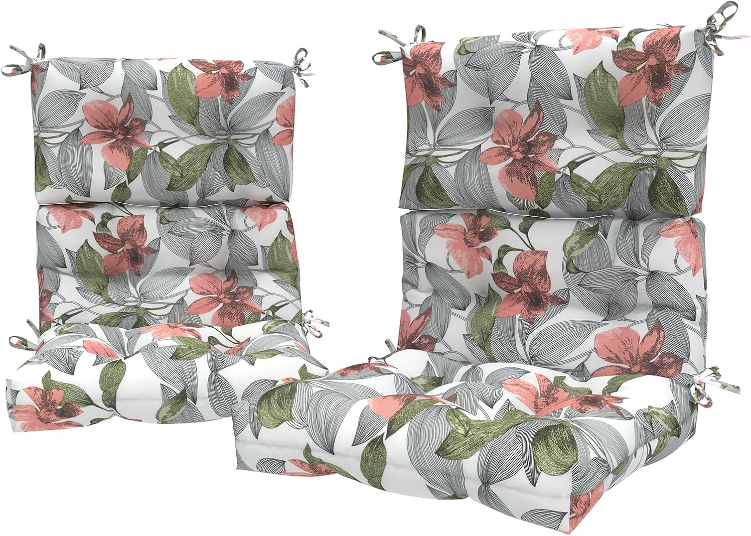 LVTXIII Outdoor Seat/Back Chair Cushion Patio Tufted High Back Cushion, Seasonal Replacement Rocking Chair Cushion with Ties (22” W x 20D”, Set of 2, Clemens Noir Pink)