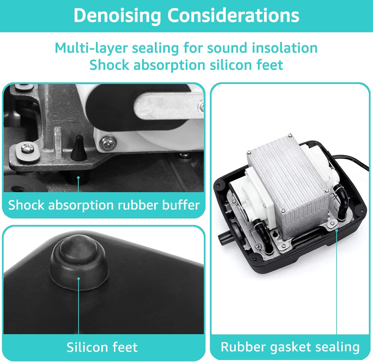 - QUIET – This linear air pump is designed with multiple denoising considerations to achieve low noise operation.