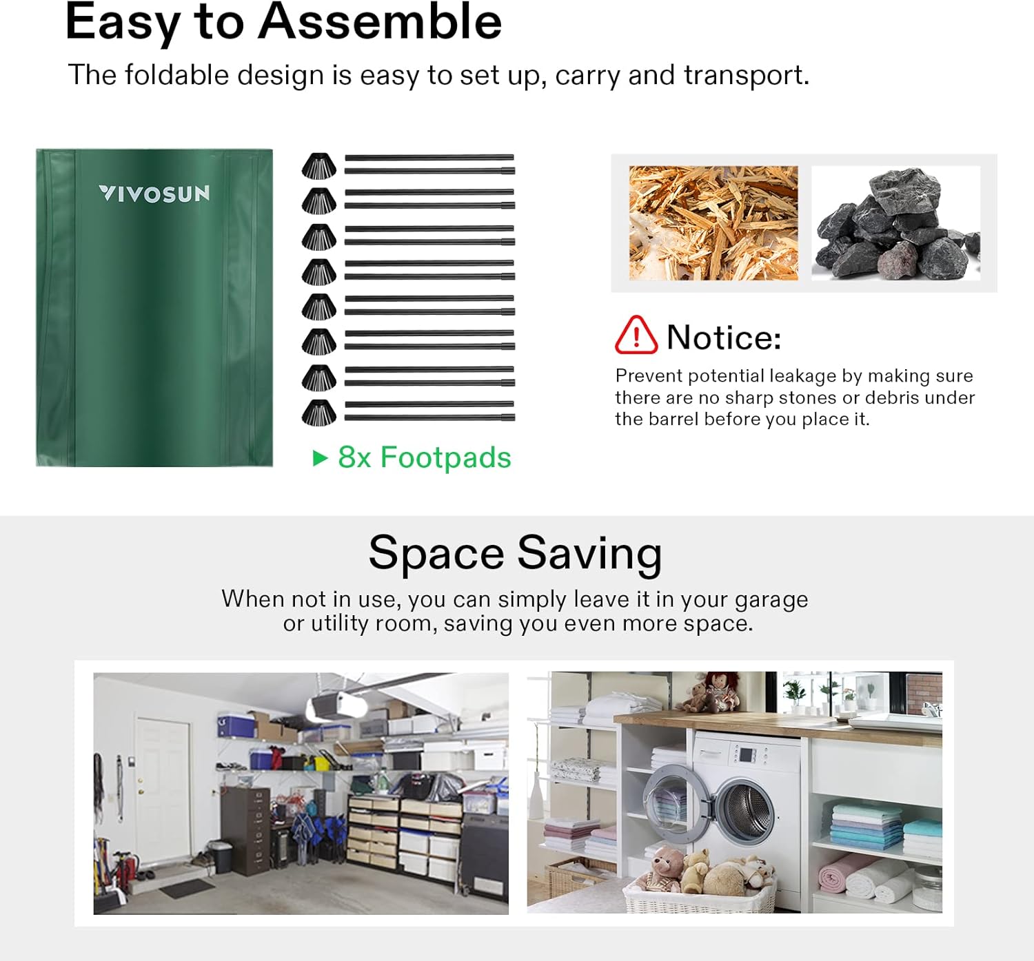 VIVOSUN Collapsible Rain Barrel, 132 Gallon Water Storage Tank with 1000D Oxford Cloth, Portable Rain Collection System Includes Two Spigots and Overflow Kit, Green