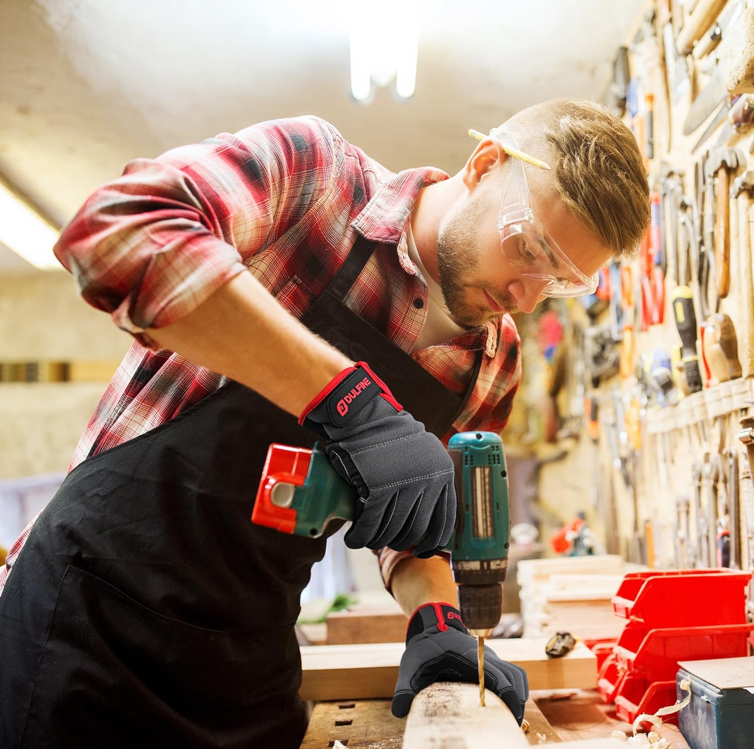 DULFINE Flex Grip Mechanic Work Gloves for Men,Black and Red Utility Safety Working Gloves Touch Screen,Excellent Grip,Ideal for Working on Cars and Outdoor Jobs(X-Large)