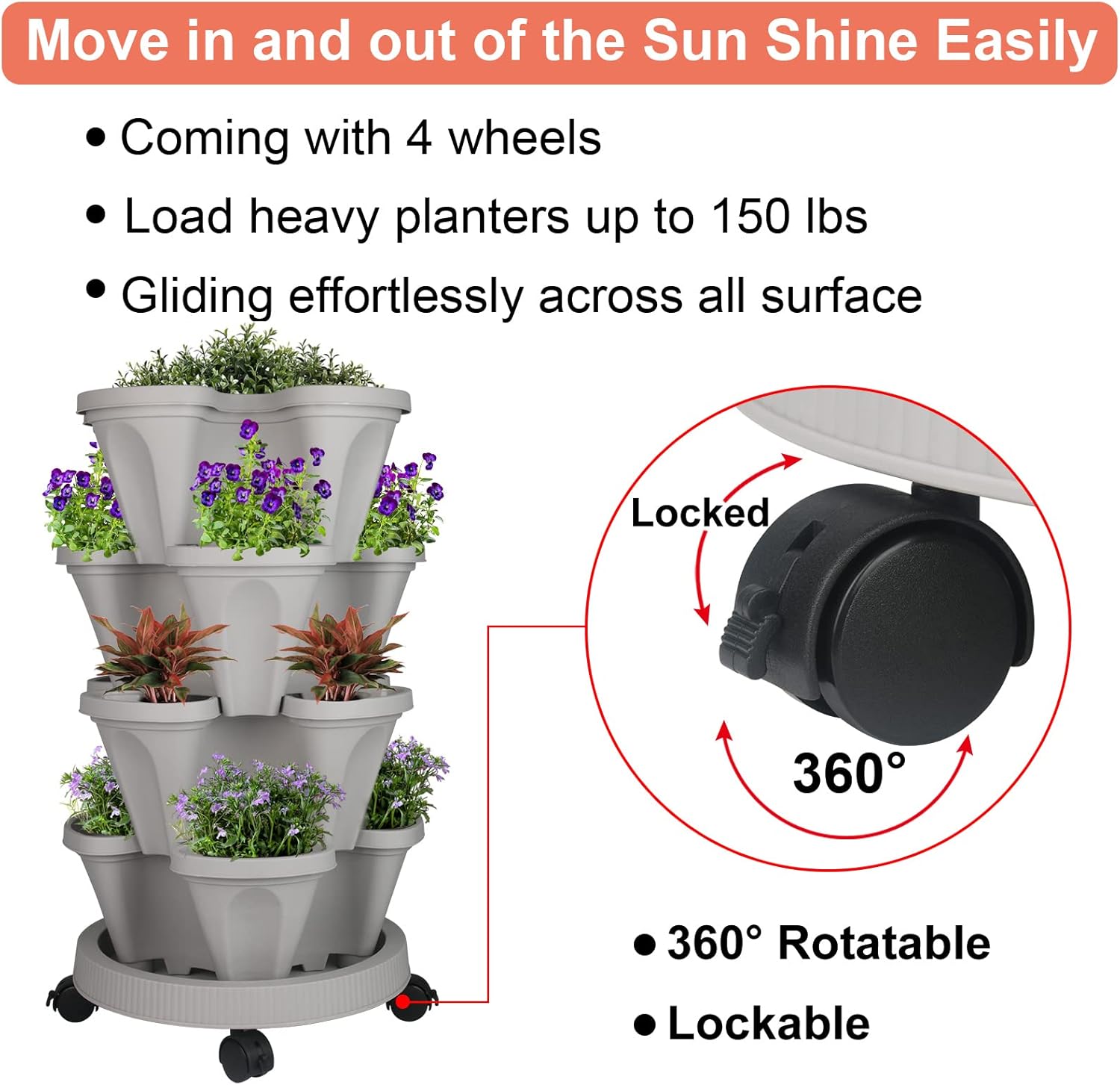 - STACKABLE PLANTER - Stack the planters to the height you desire.