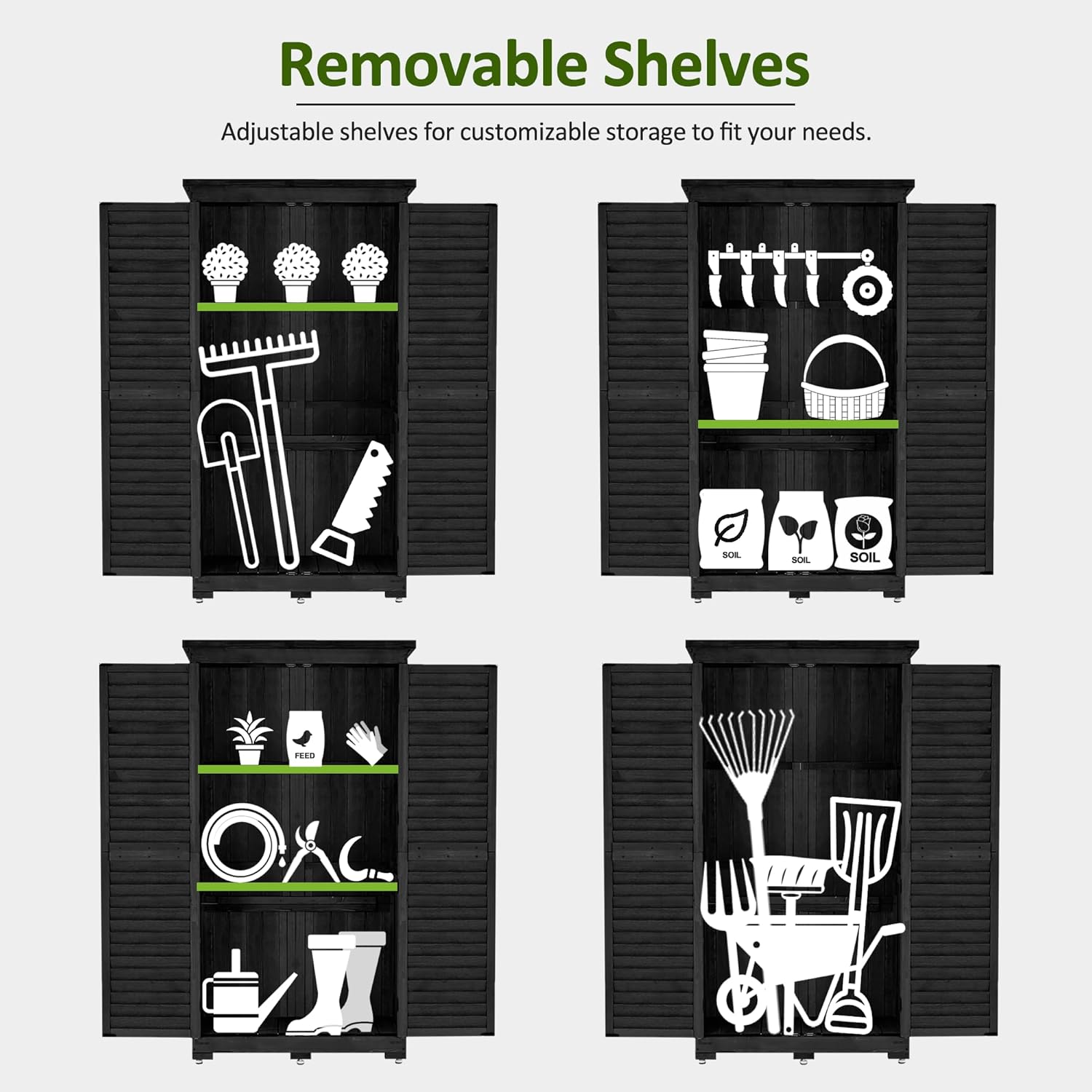 MCombo Outdoor Storage Cabinet, Garden Storage Shed, Outside Vertical Shed with Lockers, Outdoor 63 Inches Wood Tall Cabinet for Yard and Patio 0870 (Black)