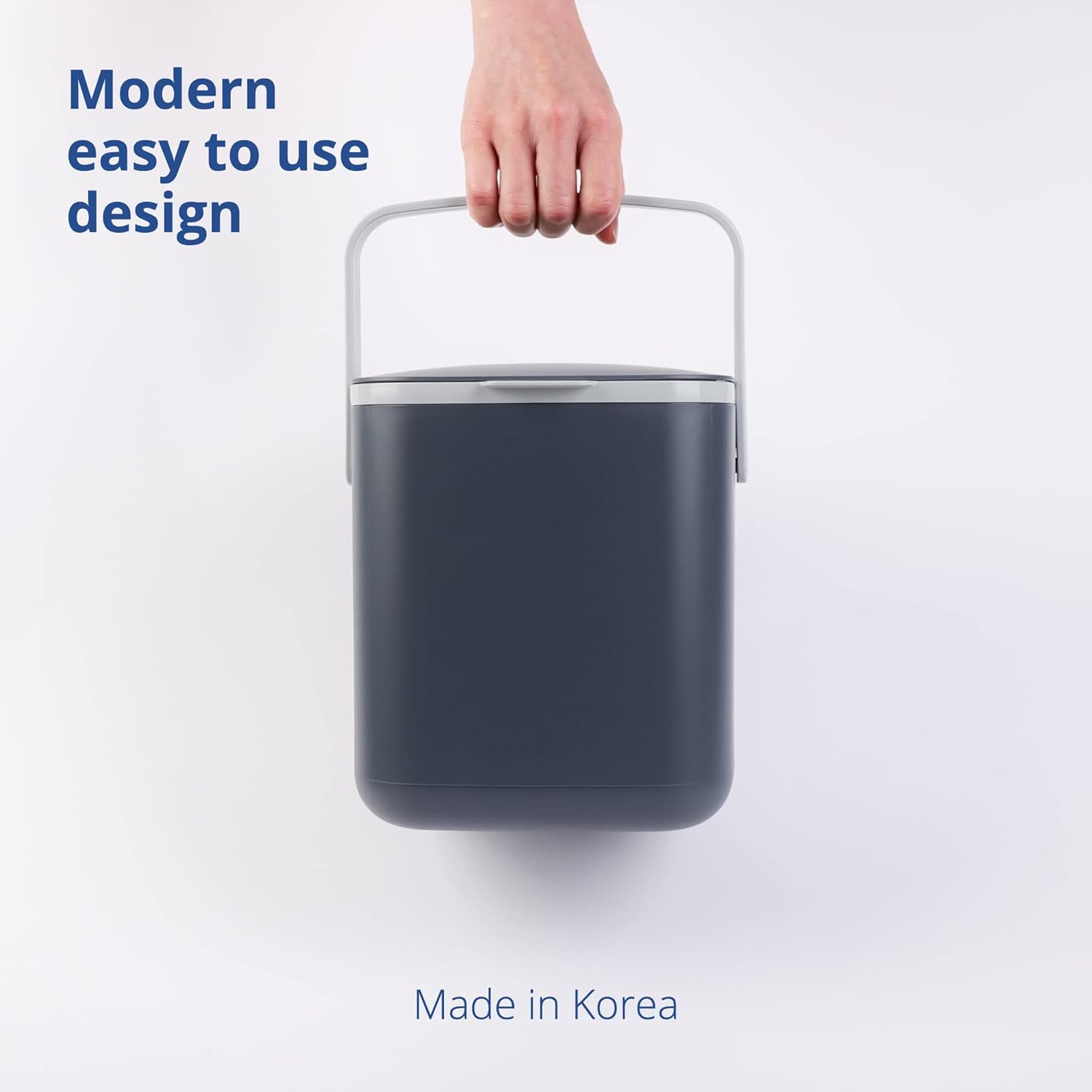 Blue Ginkgo Kitchen Compost Bin [5L / 1.32 GAL] – Filter-Free, Odor-Tight Countertop Food Waste Pail with Handles (Made in Korea, Gray)
