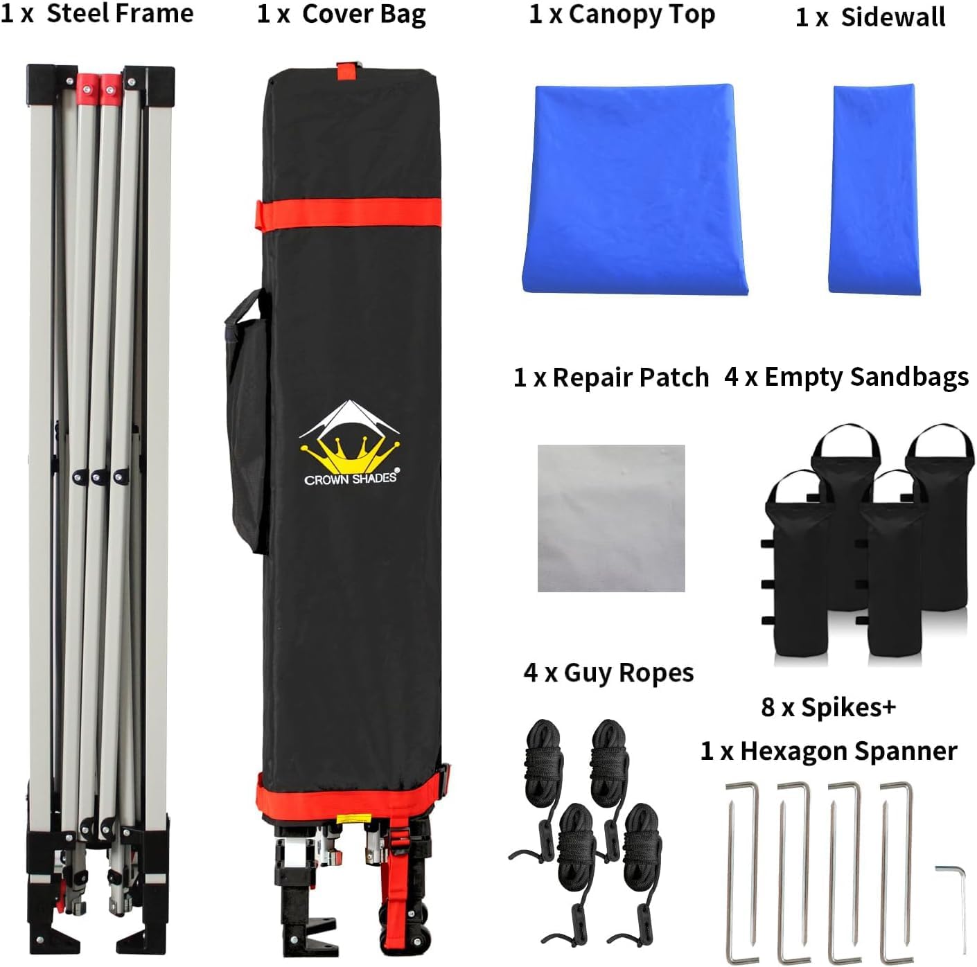 - STOโ N GO SYSTEM - Our lift-free system makes collapsing, storing, and transporting the 8x8 tent a breeze. The 8x8 tents can be stored with the fabric attached, with a specialized pocket for 4 sandbags, 8 stakes, and 4 guy ropes. Integrated wheels in the feet allow easy movement even when the instant shelter tent is set up, by simply lifting the side without wheels. This feature is especially useful for quick setup and takedown at locations like the patio or sports events