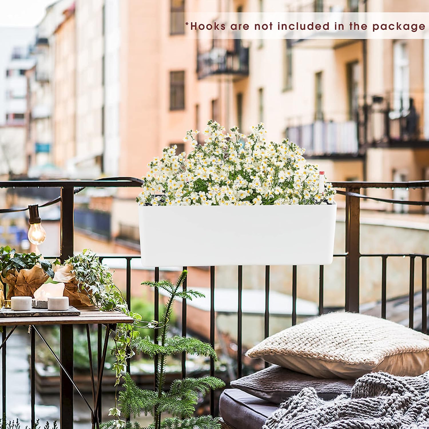GardenBasix Elongated Self Watering Planter Pots 2-Pack Window Box 5.5 x 16 inch Indoor Home Garden Modern Decorative Planter Pot for All House Plants Flowers Herbs (White,2)
