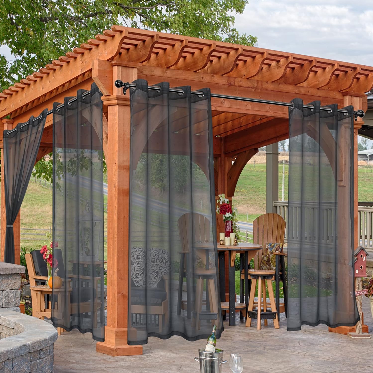 HolidayIdeas Outdoor Sheer Curtains for Patio Waterproof, 4 Panels - 54 x 95 Inch - Grey Light Filtering Voile Outside Curtains Grommet Drapes for Front Porch, Gazebo, Pergola, Backyard