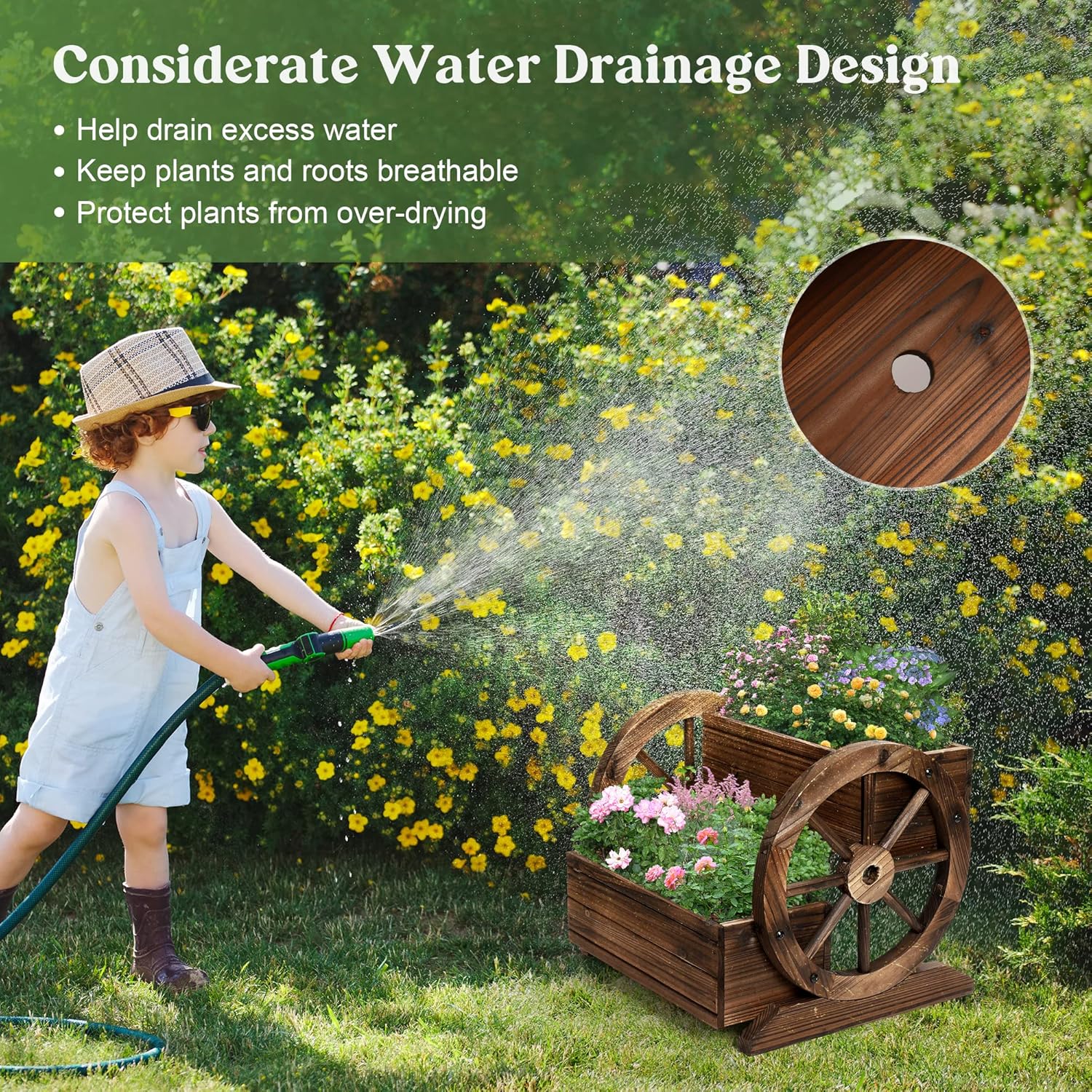 - 【Durable】: Made of high-quality cedar and burned-treated, this seeder cart has high weather resistance. Natural and sustainable materials perfectly match the style of your garden or courtyard.