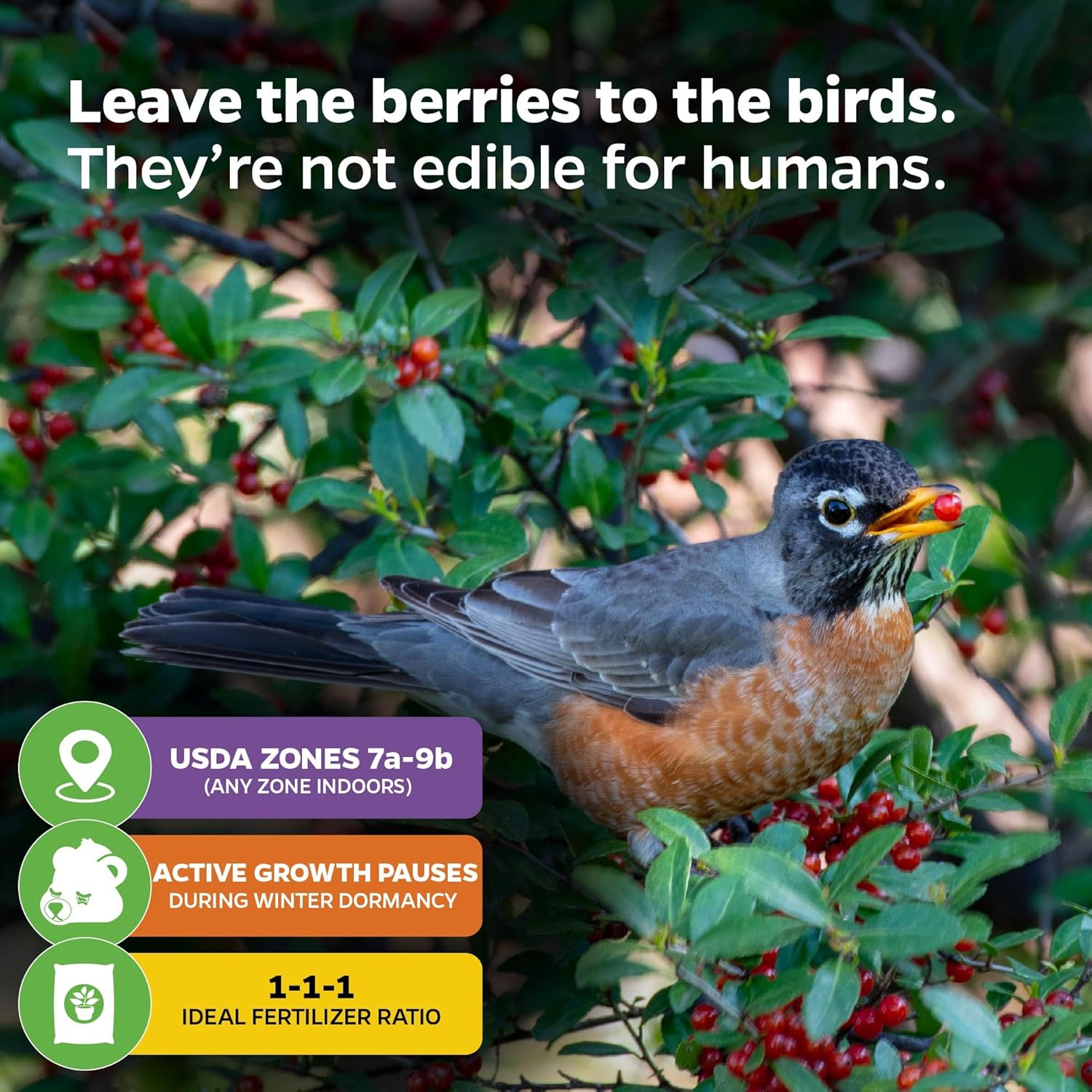 - RICH HISTORICAL ROOTS: Embrace the rich heritage of the Yaupon Holly, a revered plant among indigenous Texans. Thriving as a holly bush from coastal Texas to Virginia, it's a living piece of history. This ilex plant is more than just a shrub; it's a testament to age-old traditions.