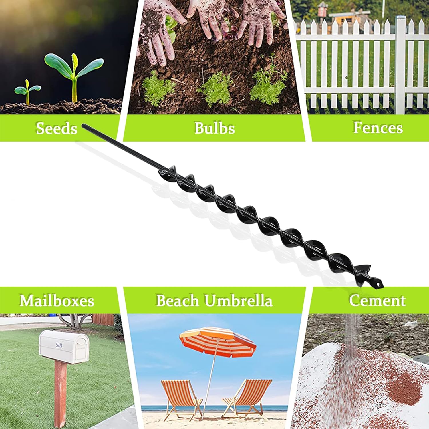- The auger drill bit has a sharp, extensive spiral tip that easily pushes through the soil, creating a perfect hole for planting. Must have garden tools.