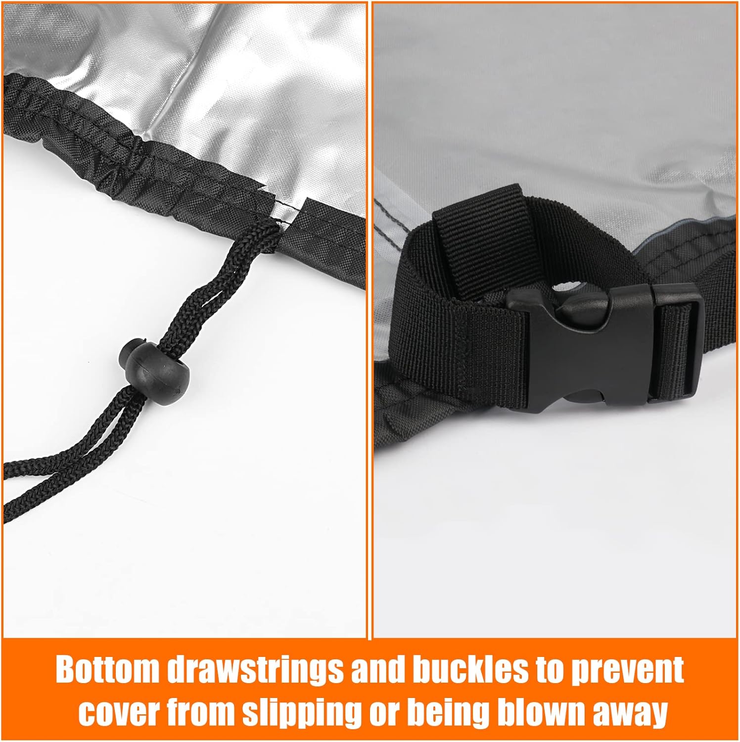 - STAY WELL ON YOUR GRILL: The adjustble straps with buckles and drawing string at the bottom can flexibly adjust the tightness of the cover so that it can sit and stay firmly over your patio grill, preventing it from being blown away by the wind.