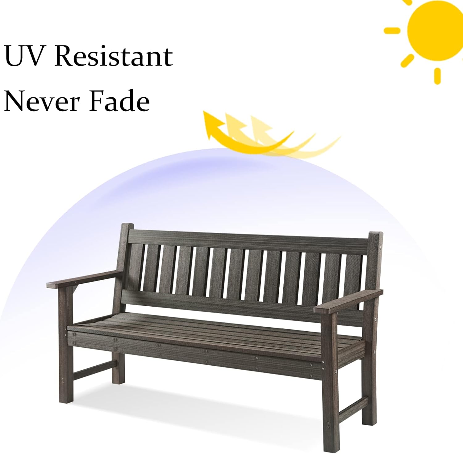 Outdoor Bench, 3-Person Garden Bench, Poly Lumber Patio Bench for Outdoors, Porch, and Park (Dark Brown)