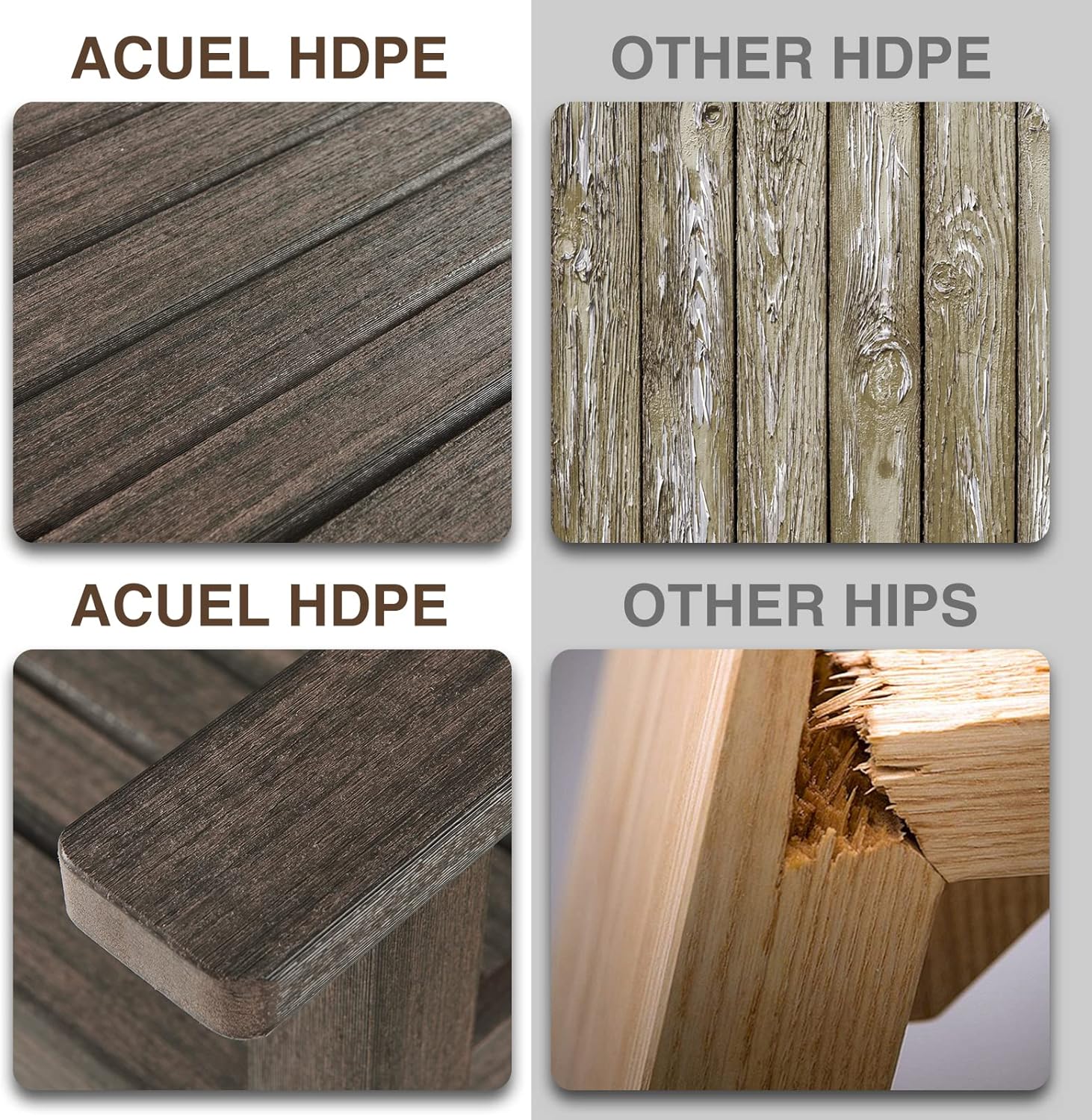 - Just Like Real Wood: The garden benches for outdoors is made of recycled materials HDPE instead of ever-decreasing wood. All surfaces have a wood grain with texturing that simulates real wood, and it is difficult to recognize the difference between our products and solid wood products