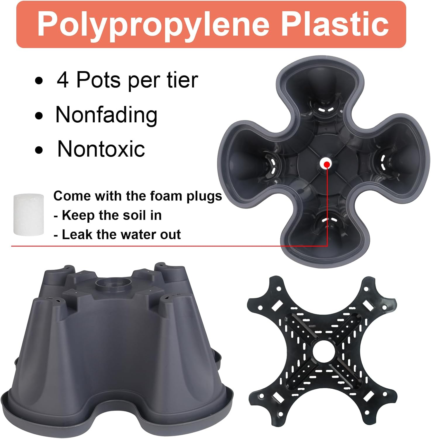 Vertical Planter 7 Tier Stackable Planters Garden Planters Strawberry Herb Flower and Vegetable Planter Indoor Outdoor Gardening Pots with Removable Wheels and Tools