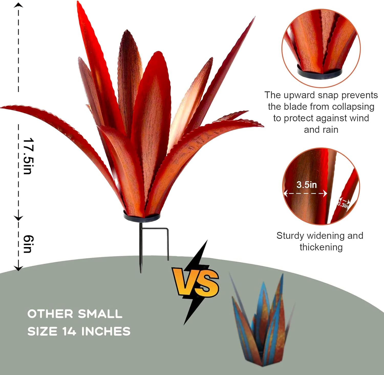 TOMBABY Enlarge Thickened Wind Resistant Metal Agave Garden Art Metal Plant Country Garden Sculpture Statue Outdoor Decoration Agave Metal Plant Courtyard Garden Lawn Ornament Gift (1, 12 Leaves red)